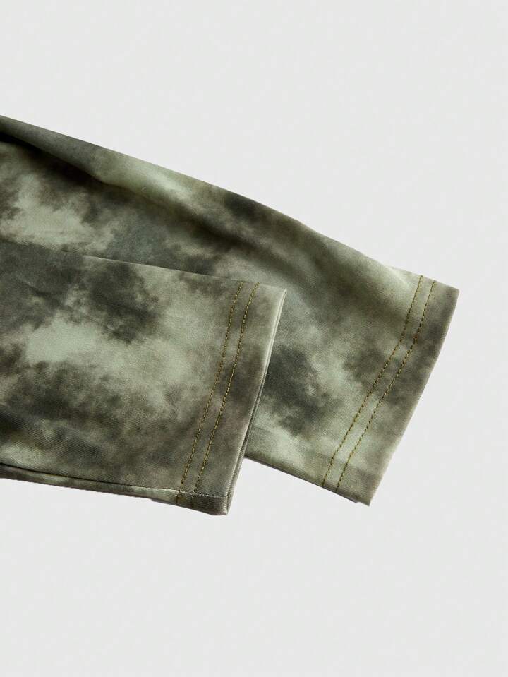 Fairycore Camiseta de manga larga ajustada con estampado de mariposa de efecto tie-dye para mujer, otoño