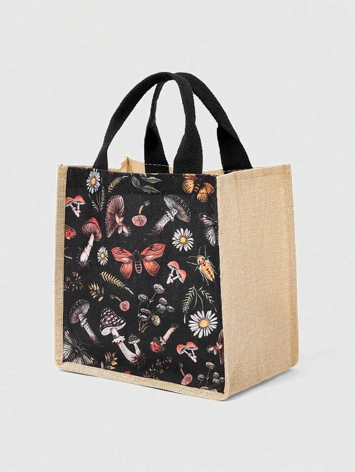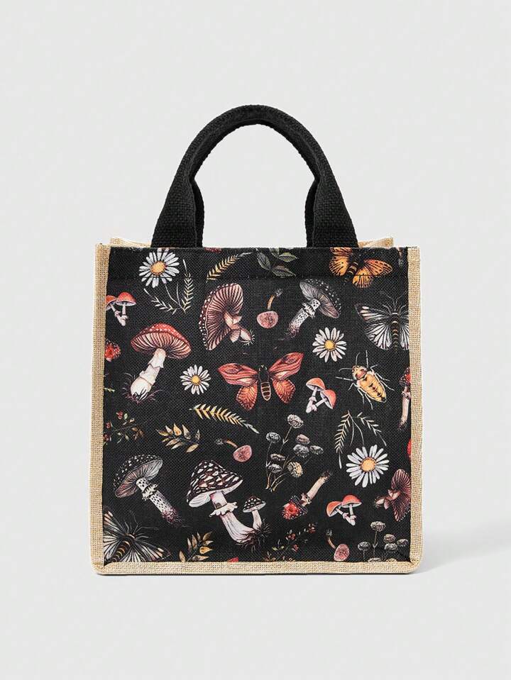 Fairycore Bolso de mano con estampado floral de setas y mariposas para mujer