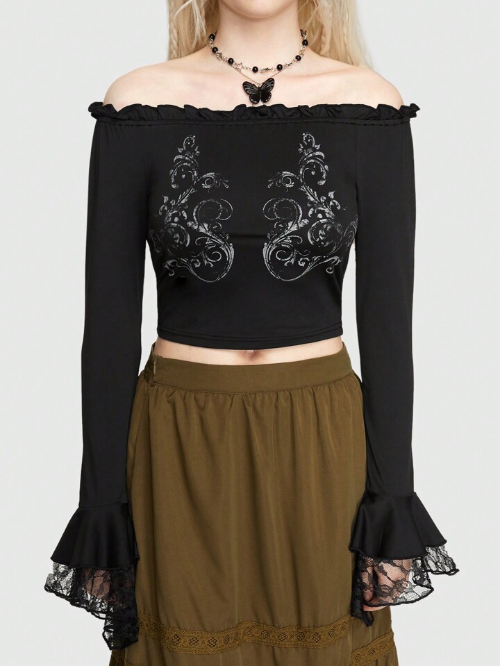 Fairycore Camiseta De Ajuste Delgado Con Cordones De Encaje Sin Hombros Para Mujer