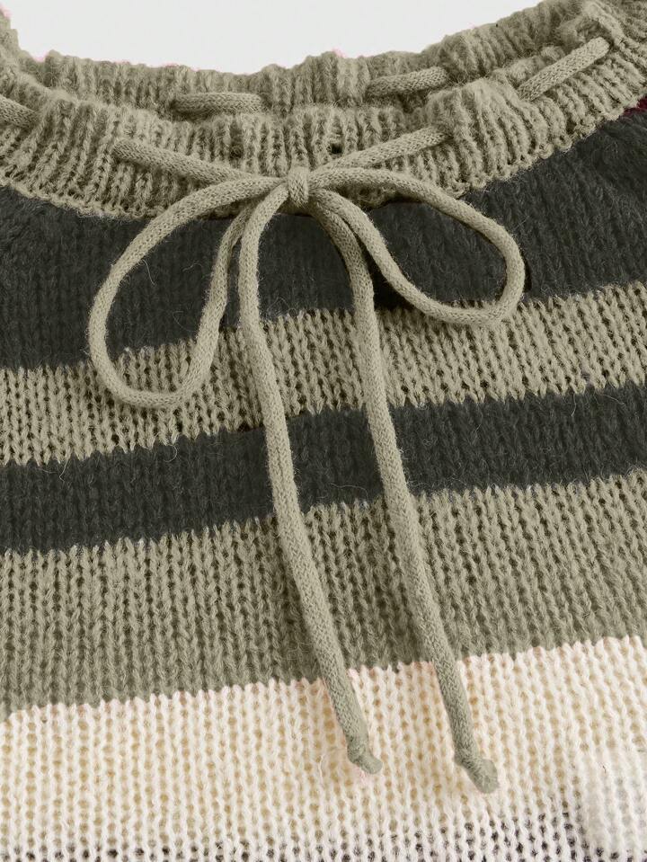 Fairycore Sweater De Manga Larga Con Rayas Fuera Del Hombro Para Mujeres Con Correas