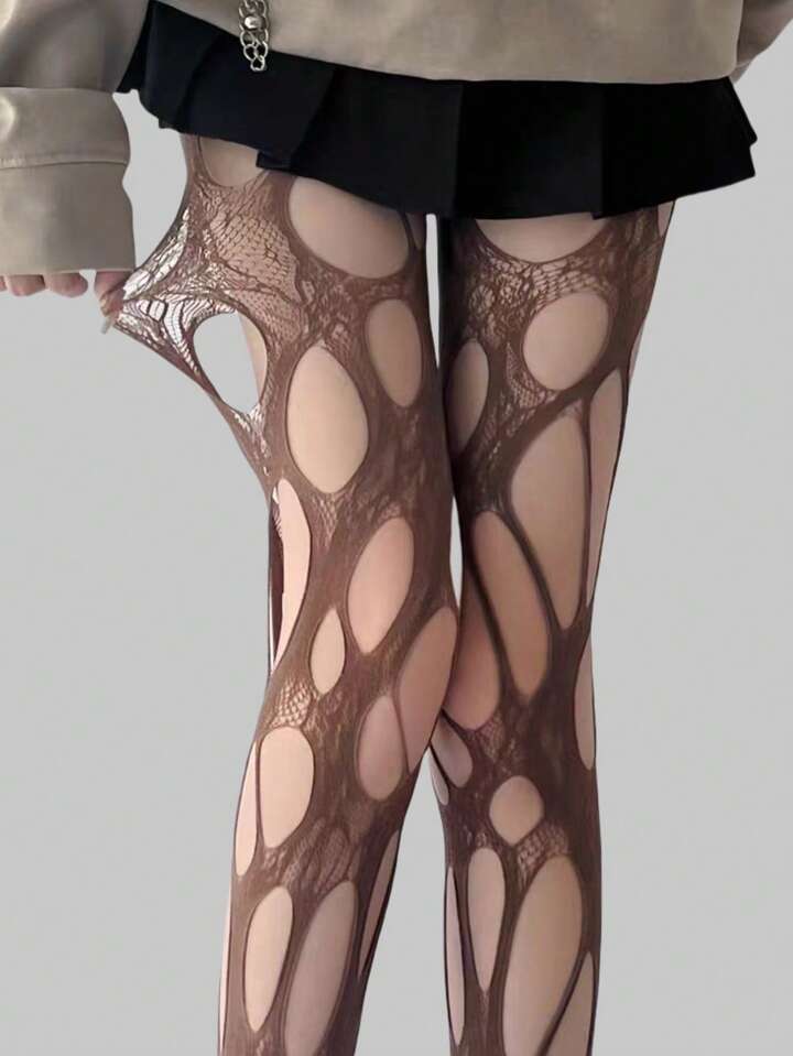 Fairycore Medias De Red Marrón Café Con Agujeros De Talla Única Para Mujer, Para Todas Las Estaciones