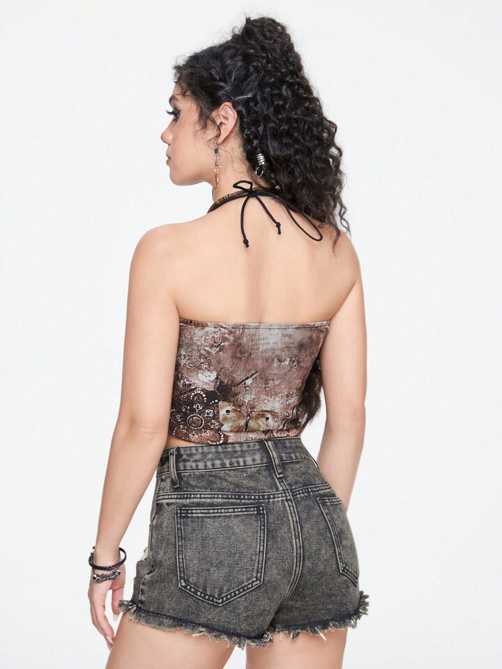 Fairycore Collar de cuentas de madera con estampado adornado con mariposa plisada para mujer con borde afilado