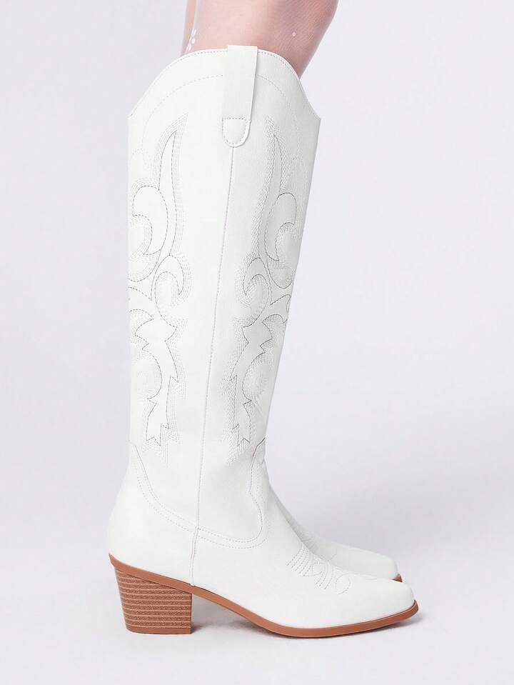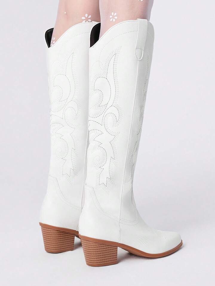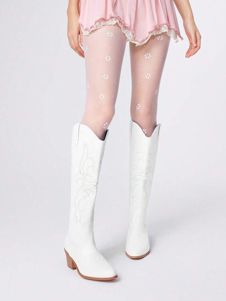 Fairycore Botas occidentales de mujer con cremallera y bordados, botas hasta la rodilla, nuevos lanzamientos para primavera/otoño