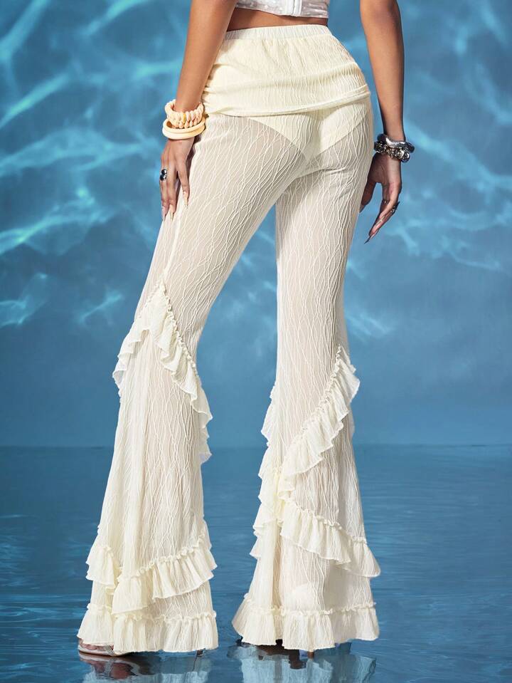 Fairycore Pantalones acampanados con dobladillo de volantes de tela de jacquard con textura de sirena sexy y retro para mujer