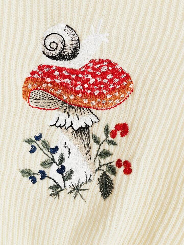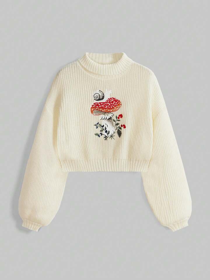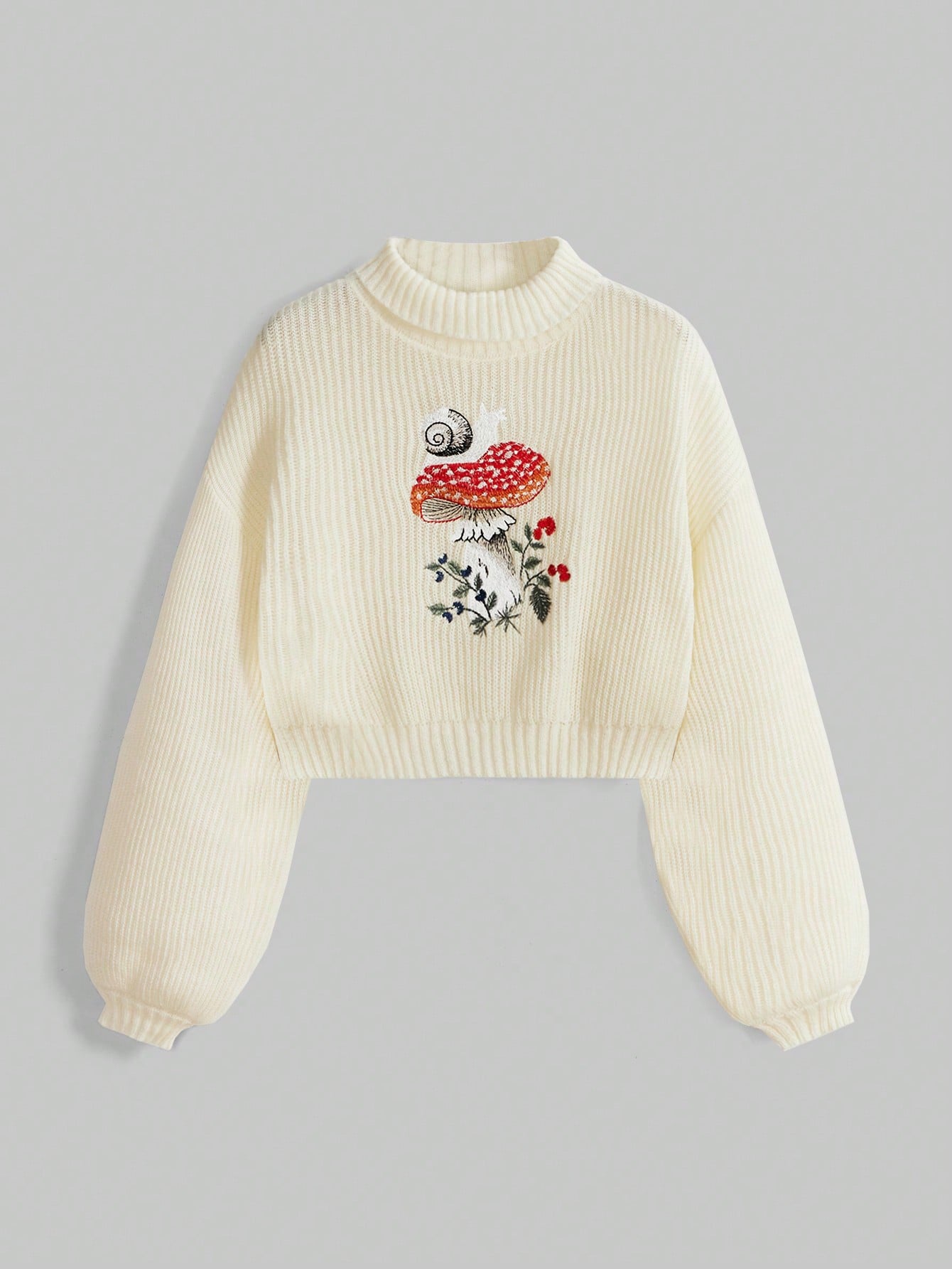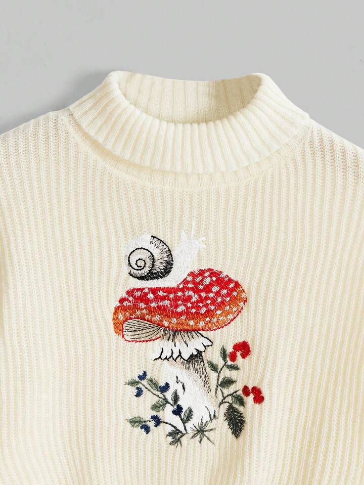 Fairycore Suéter de cuello alto versátil con bordado de caracol y seta, estilo retro Mori para mujer