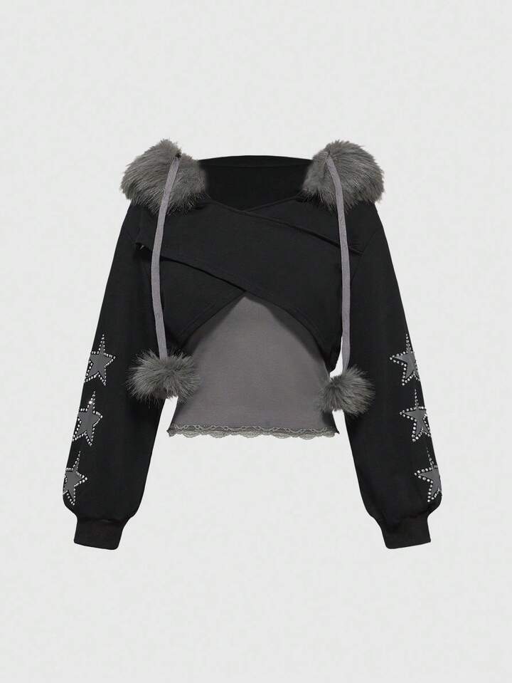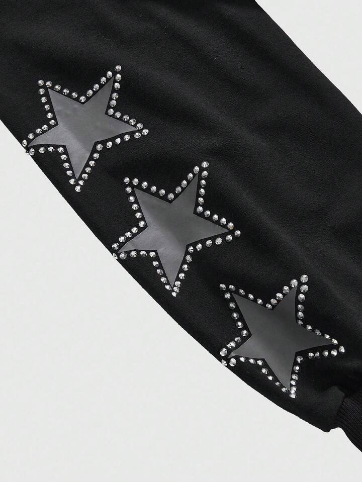 Fairycore Conjunto de sudadera con capucha y chaleco con parches de estrellas de cristal estilo retro Y2K para mujer