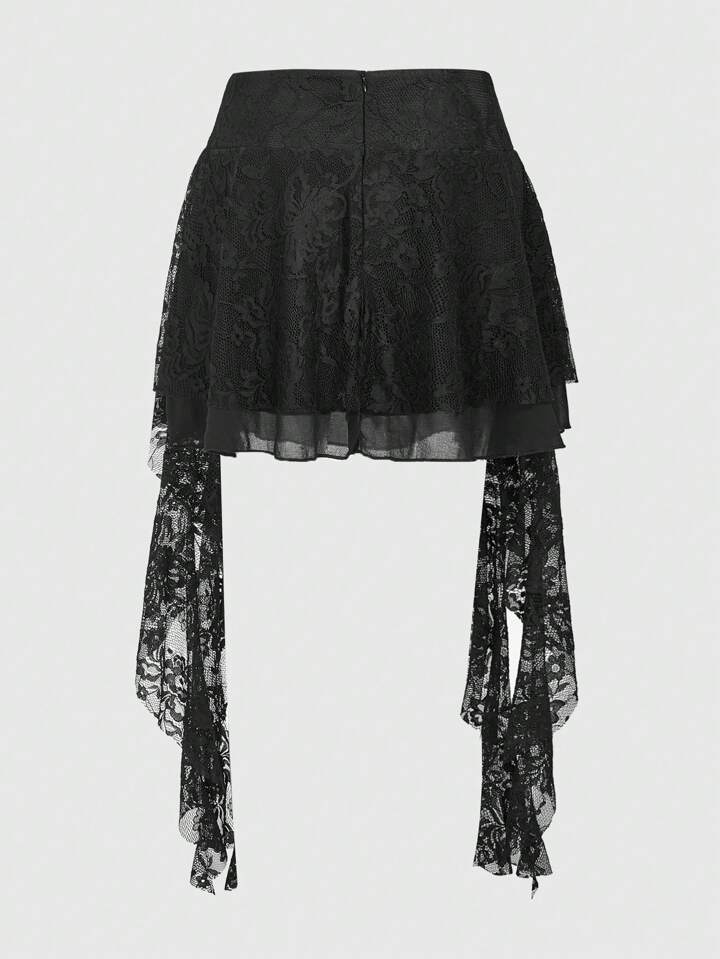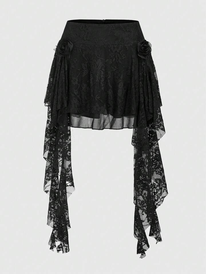 Fairycore Falda De Encaje Con Dobladillo Asimétrico Y Diseño De Rosas Para Mujer Con Detalle De Volantes