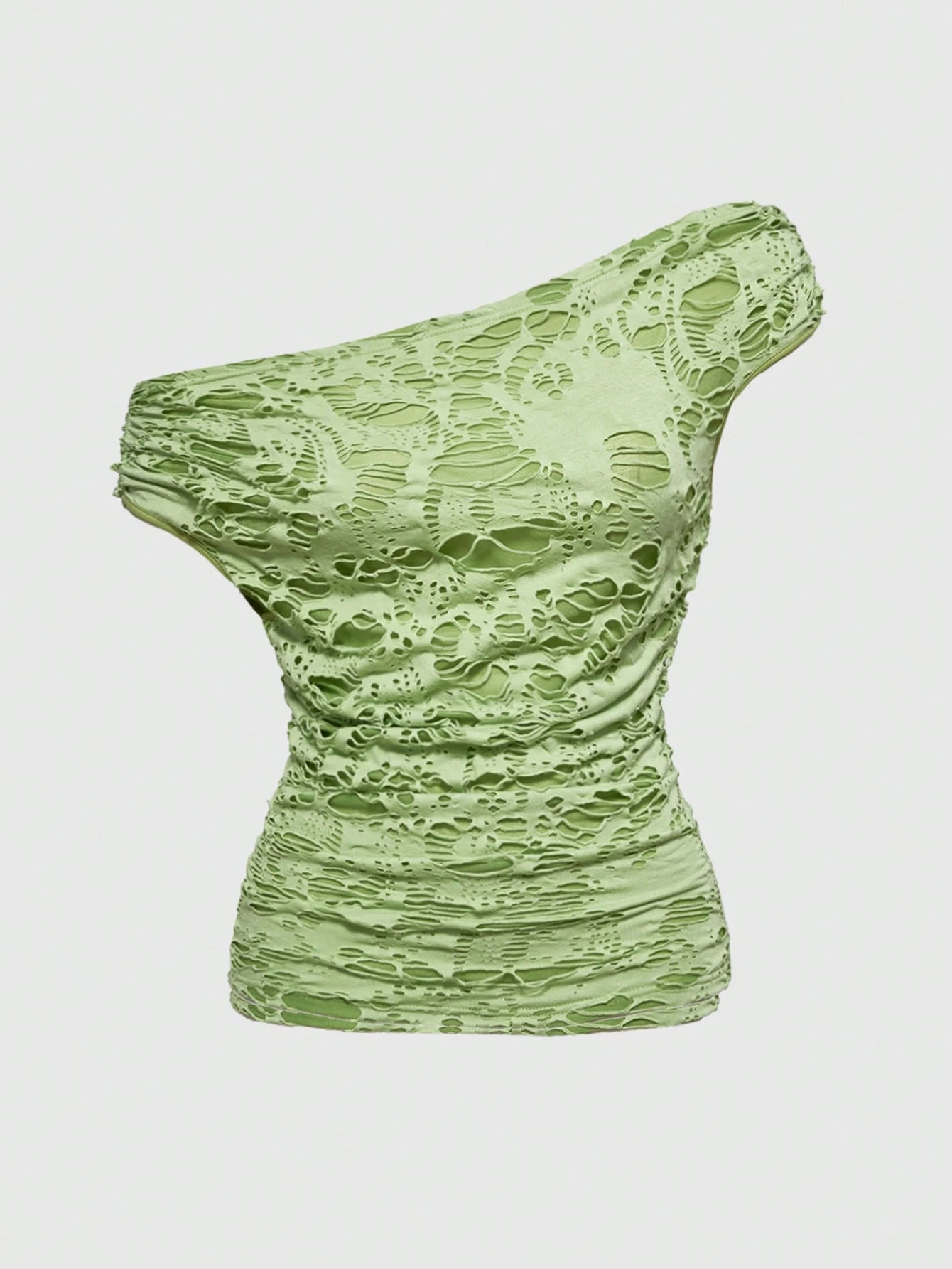 Fairycore Camiseta de mujer con un solo color, fruncida, con recorte de bosque y hombros descubiertos