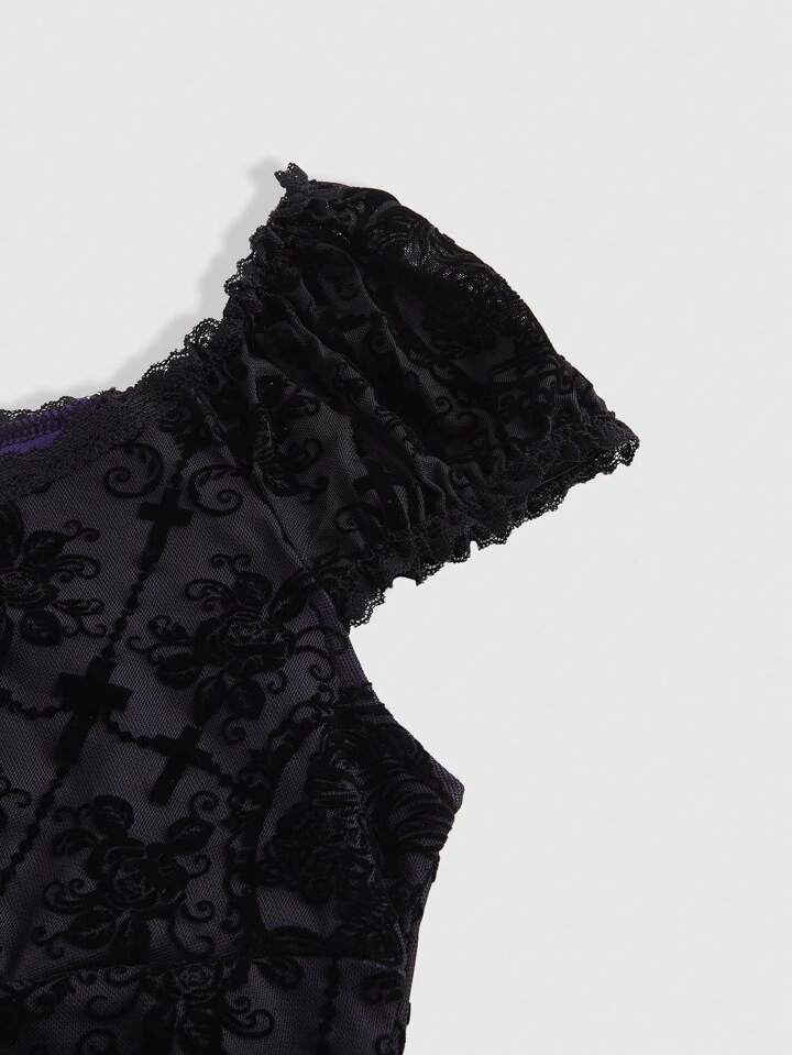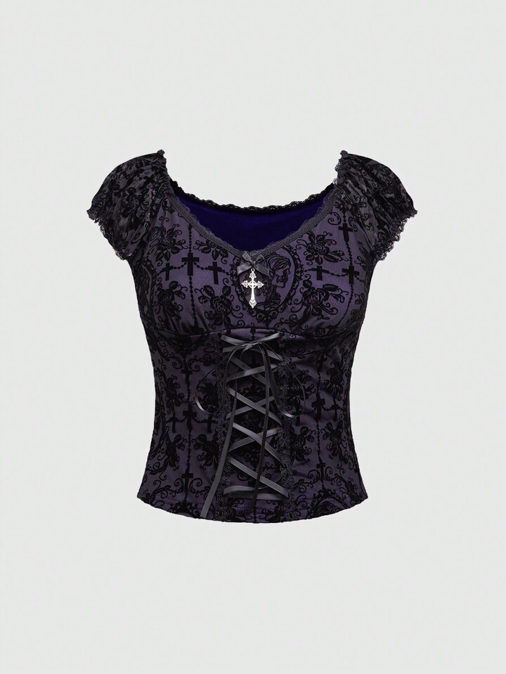 Fairycore Camiseta de mujer con lazo y ribete de encaje en estilo vintage palaciego, con tela tipo