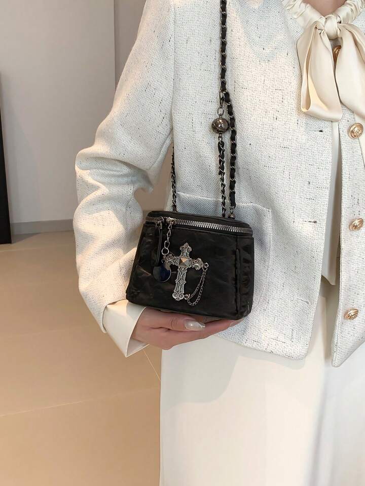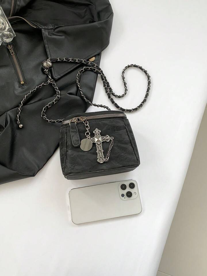 Goth Bolso de estilo gótico de moda para mujer, bolso cruzado versátil, bolso cuadrado pequeño, bolso chic de mujer punk