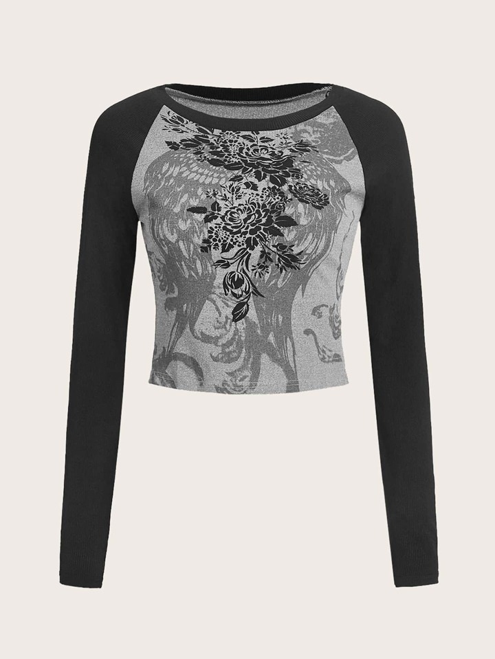 Camiseta corta con estampado floral de color combinado
