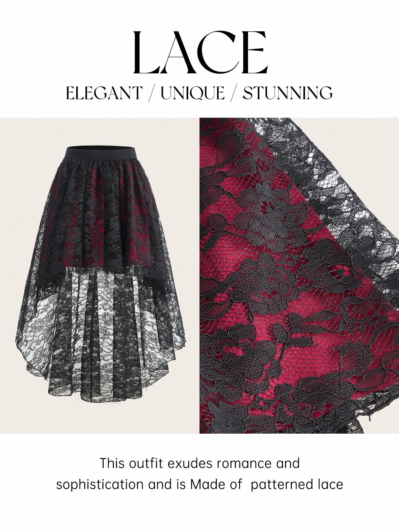 Falda con dobladillo alto y bajo con encaje floral, escolar
