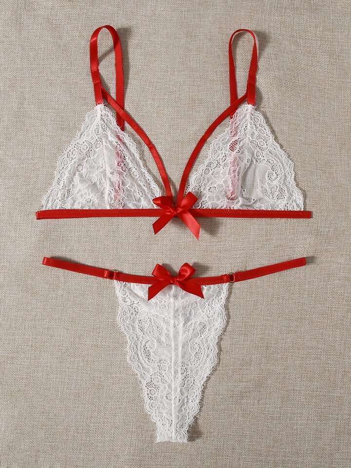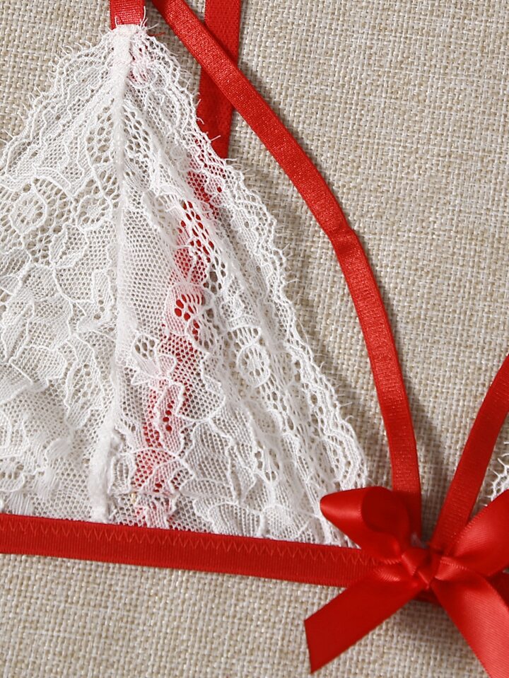 Conjunto De Lencería De Tanga De Encaje Floral