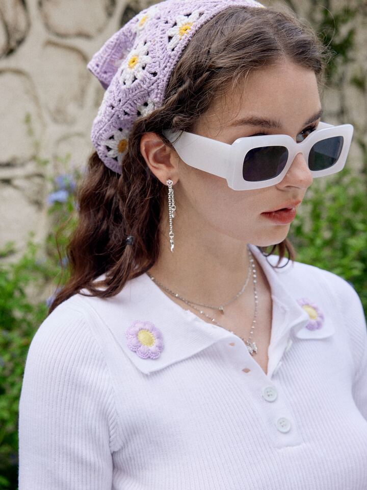 Top tejido corto floral con parche cuello