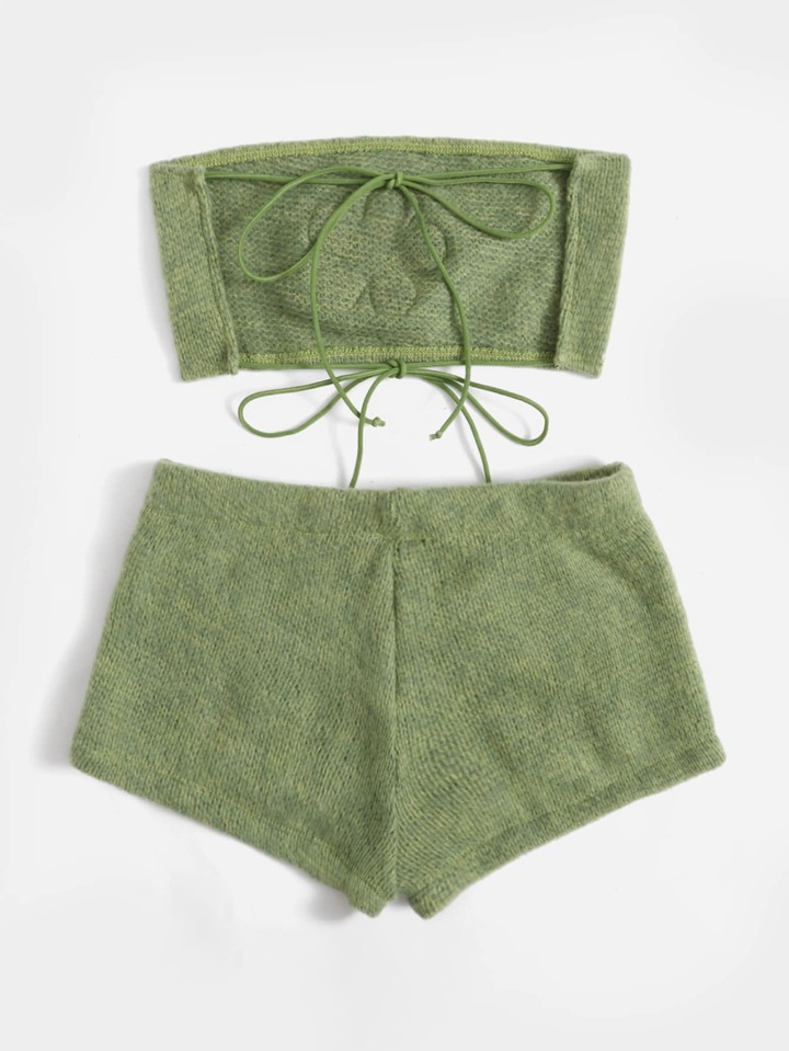 con patrón floral de espalda abierta con nudo Top bandeau & Shorts