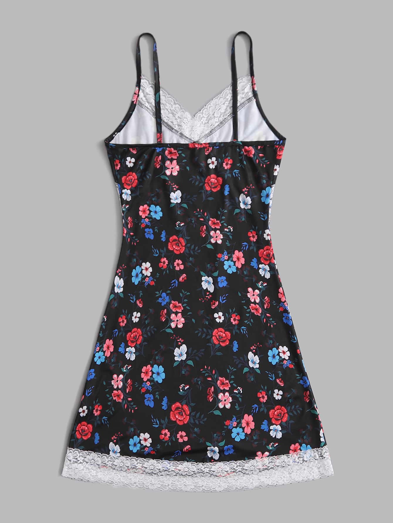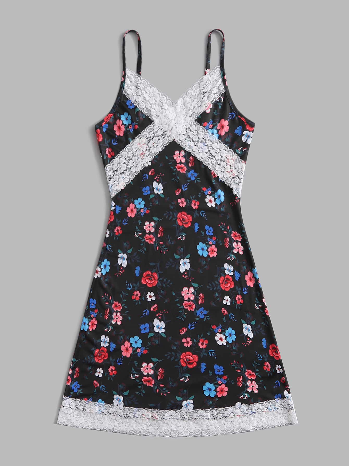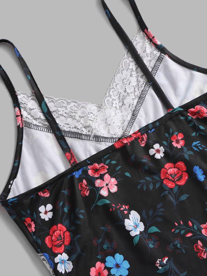 Vestido de tirantes con estampado floral con encaje en contraste