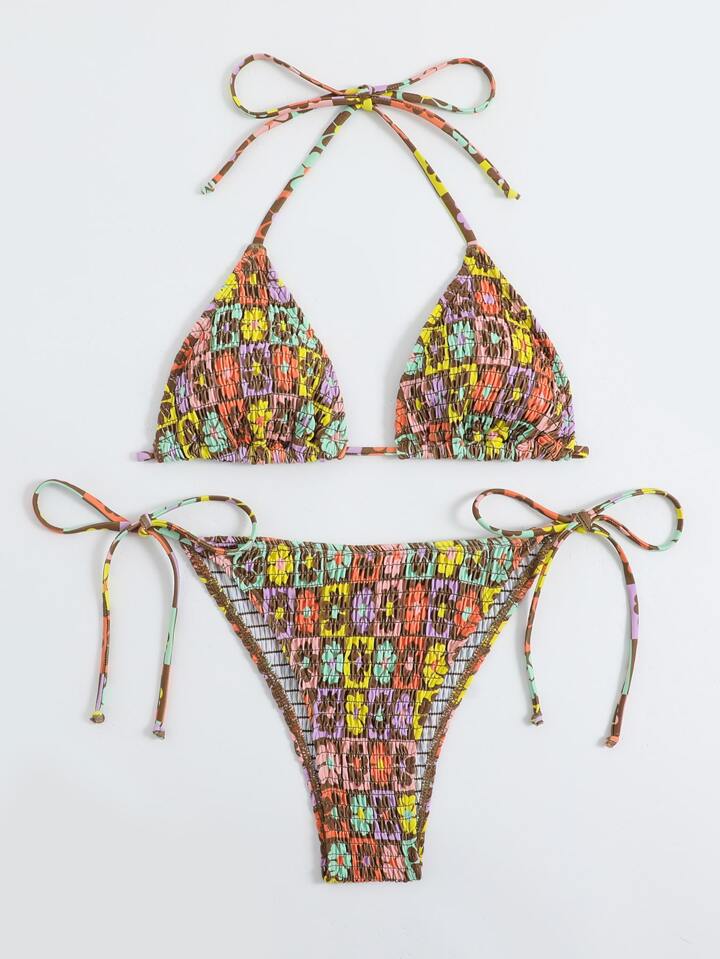 Conjunto de bikini halter de triángulo con estampado floral para el verano en la playa