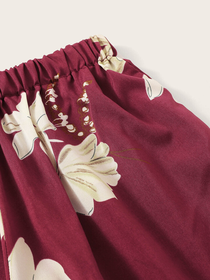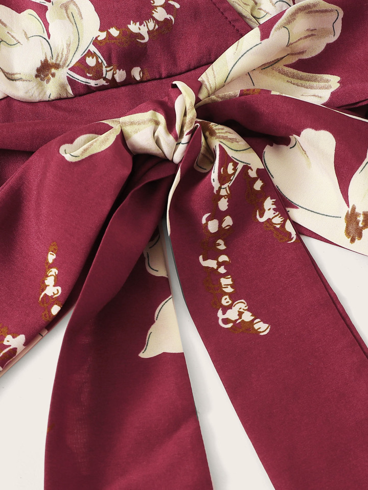 Top de manga mariposa bajo con nudo con estampado floral con shorts