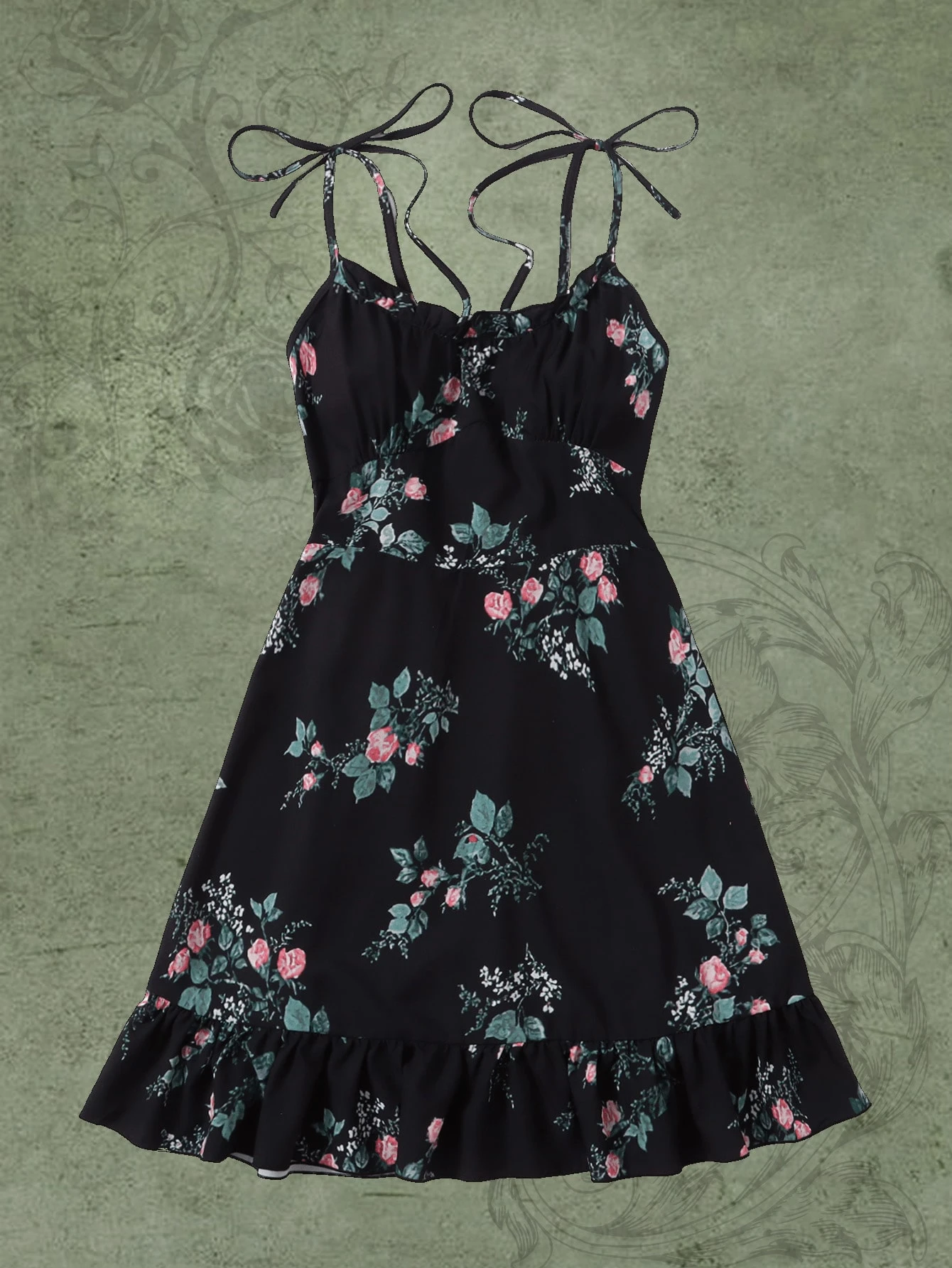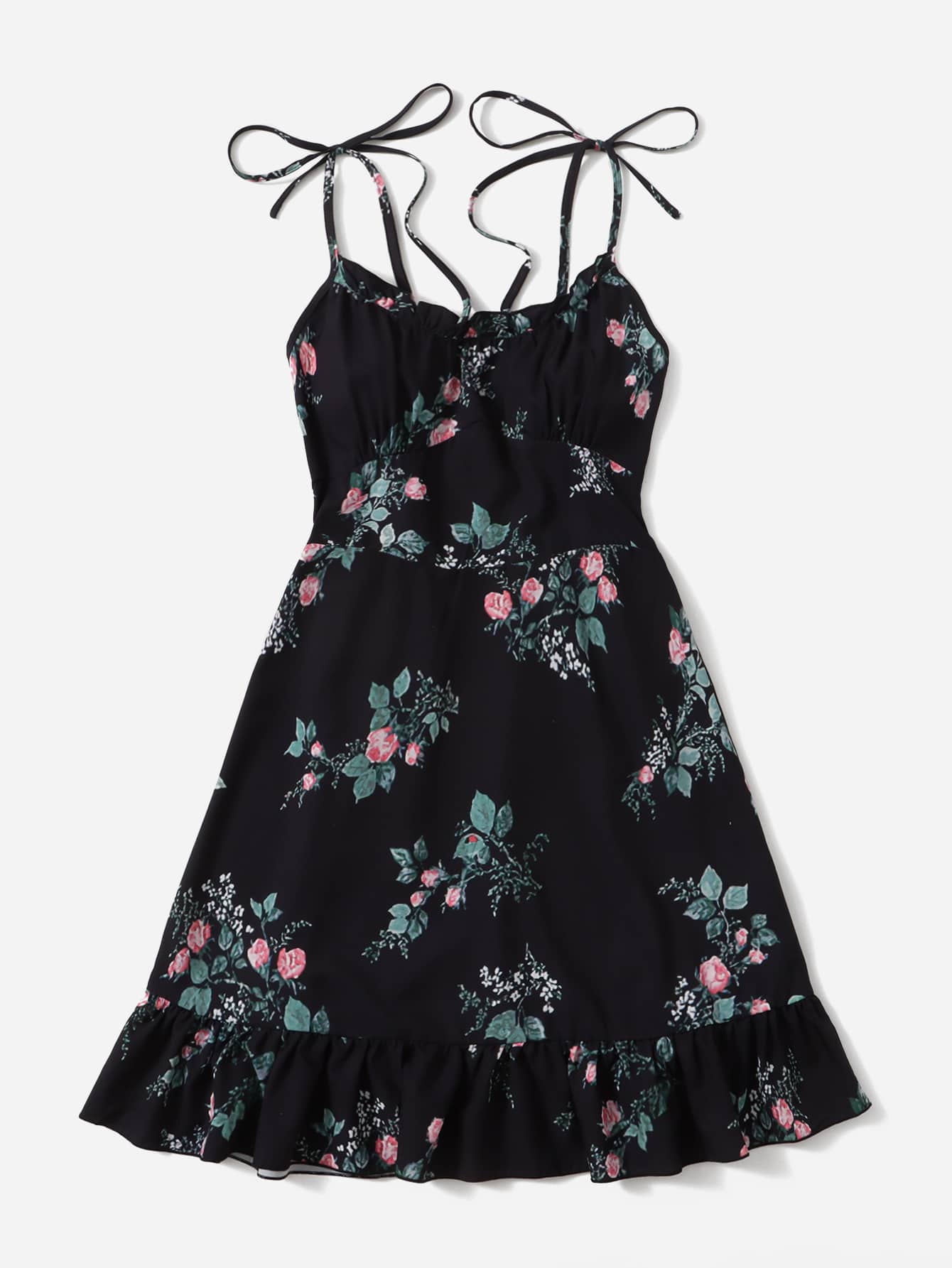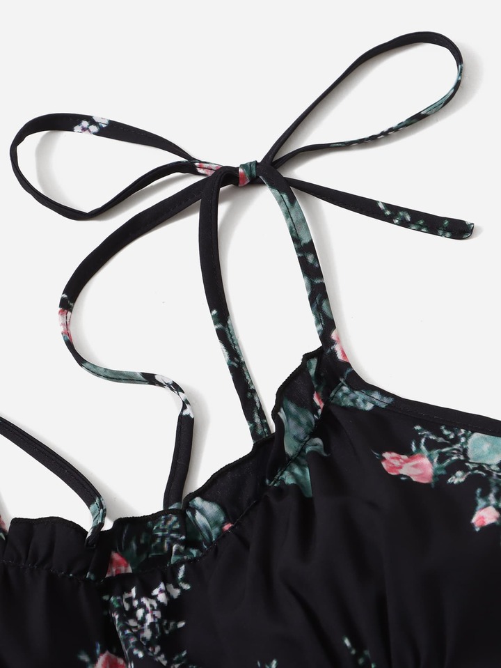 Vestido con estampado floral de hombros con cordón bajo con fruncido