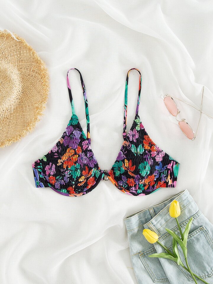 Top bikini floral Smocked con aro