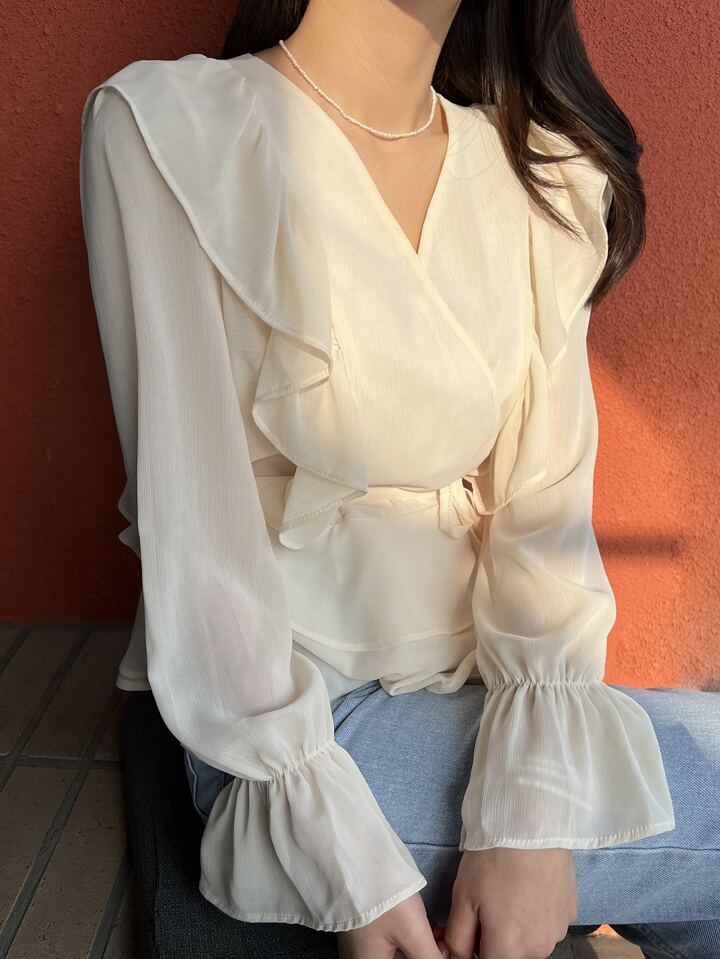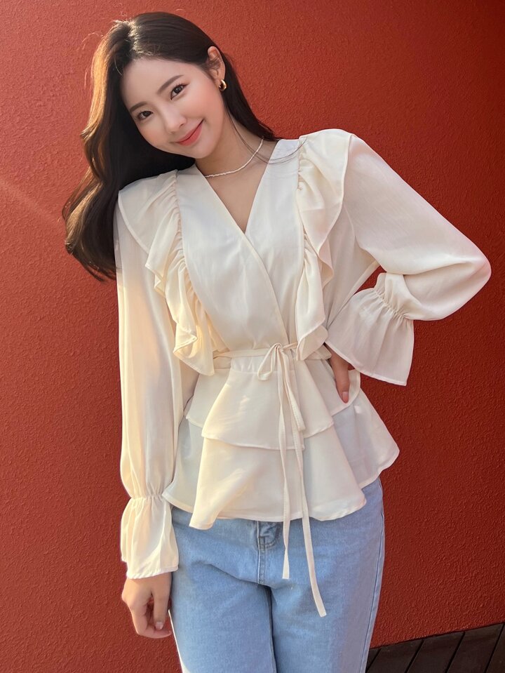 Camisa de manga con volante fruncido bajo a capas