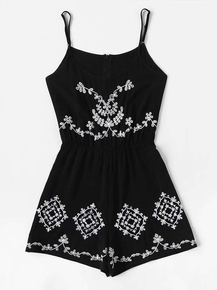 Mono corto de tirantes con bordados en contraste