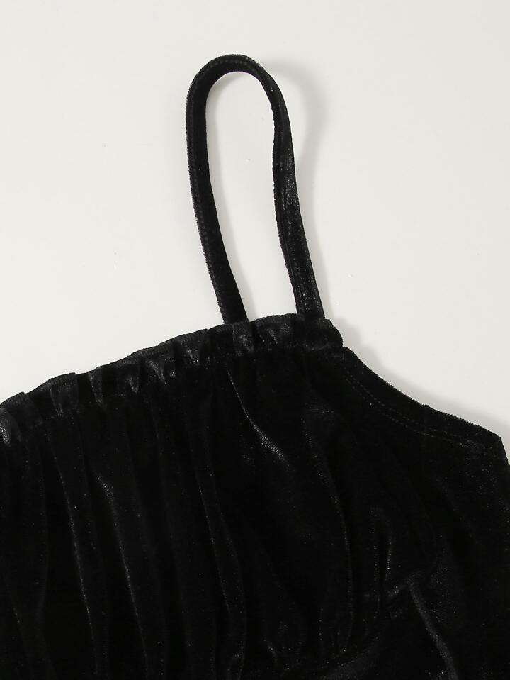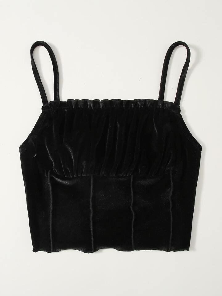 Top de tirantes corto de terciopelo de pecho fruncido