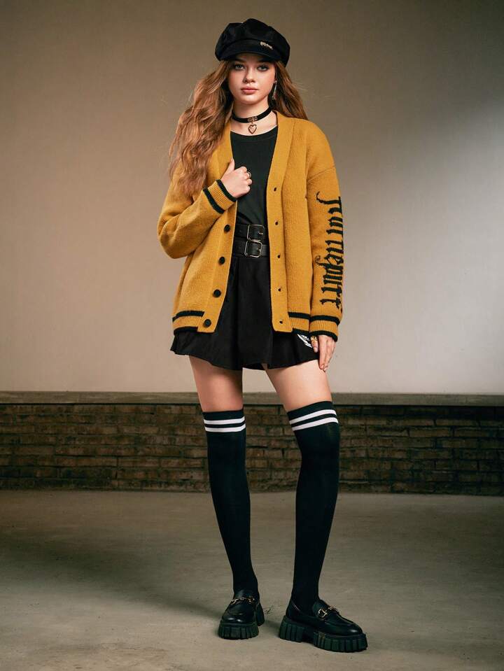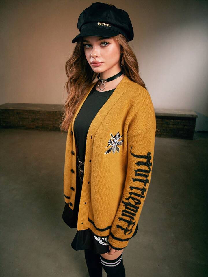 Harry Potter | ROMWE Cárdigan De Punto Con Botones Frontales Y Patrón De Letras