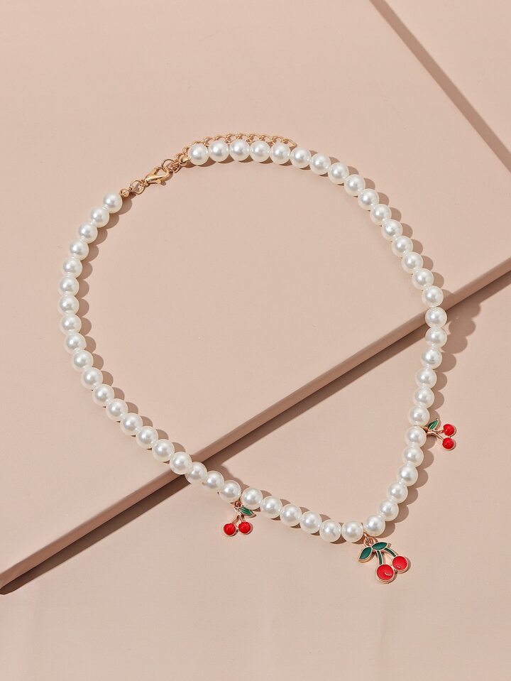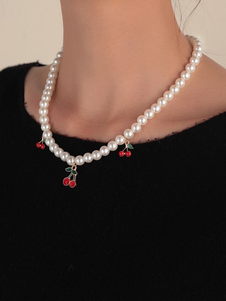Collar Con De Frutas Y Perlas Falsas