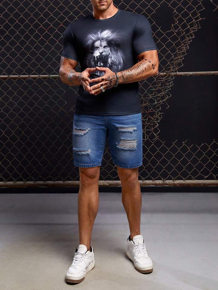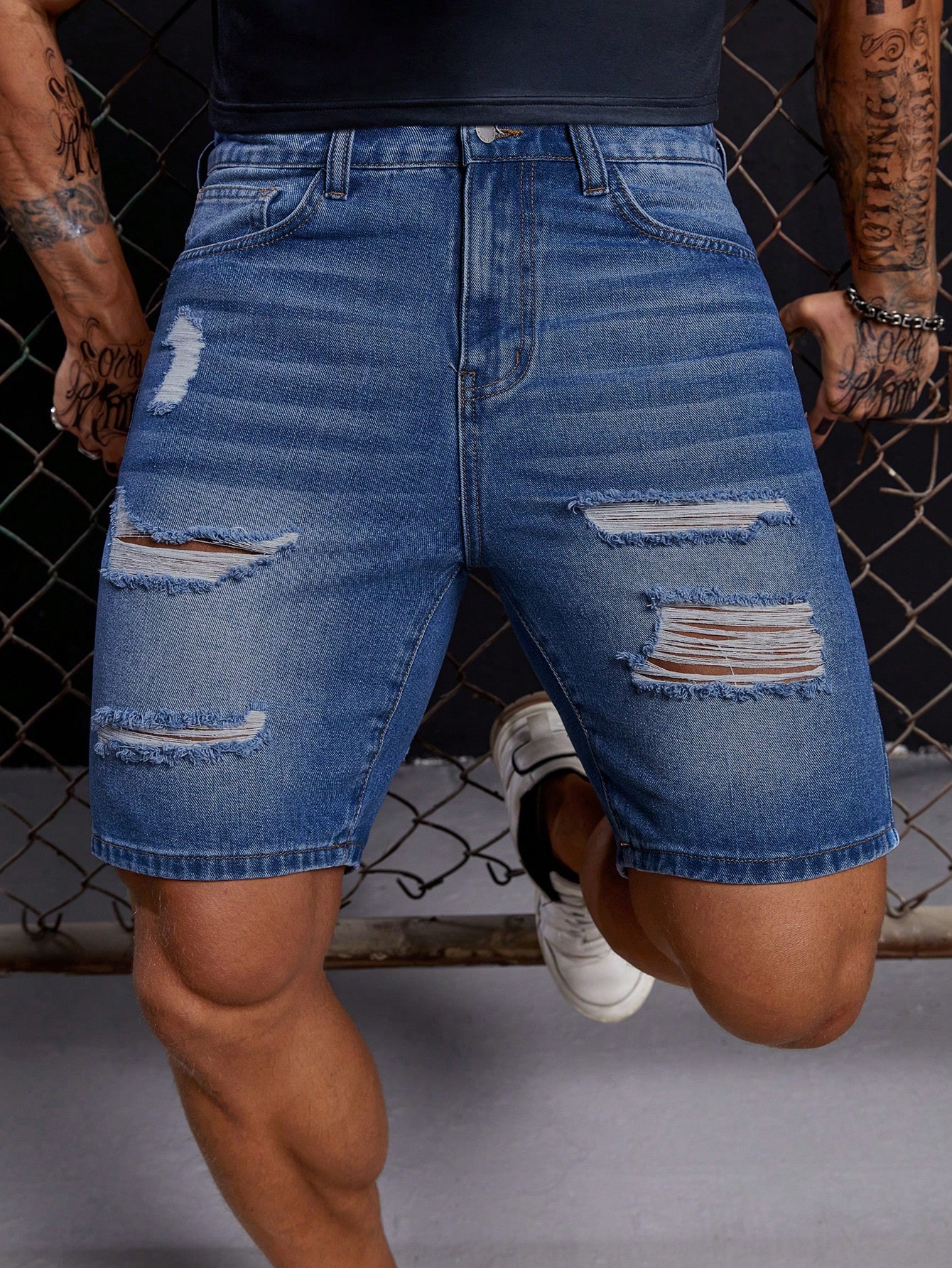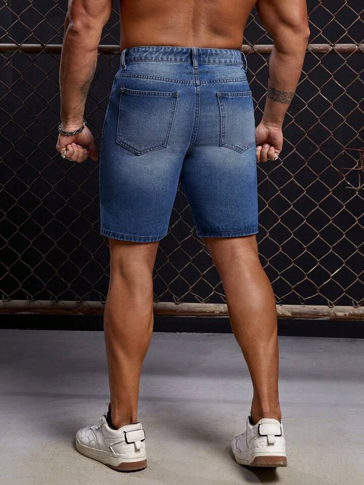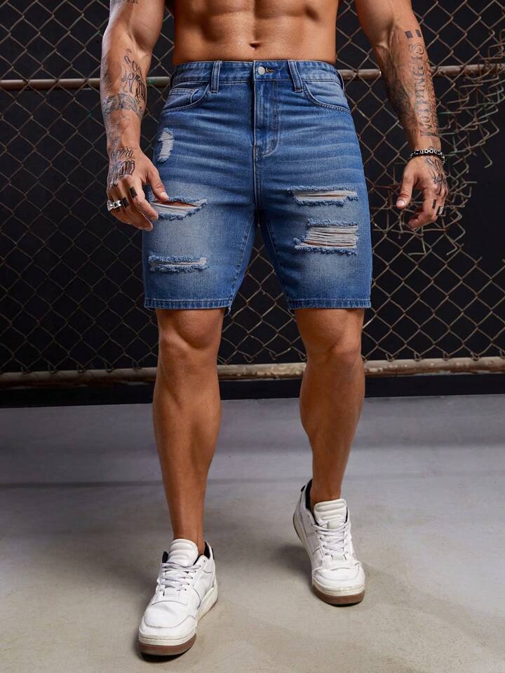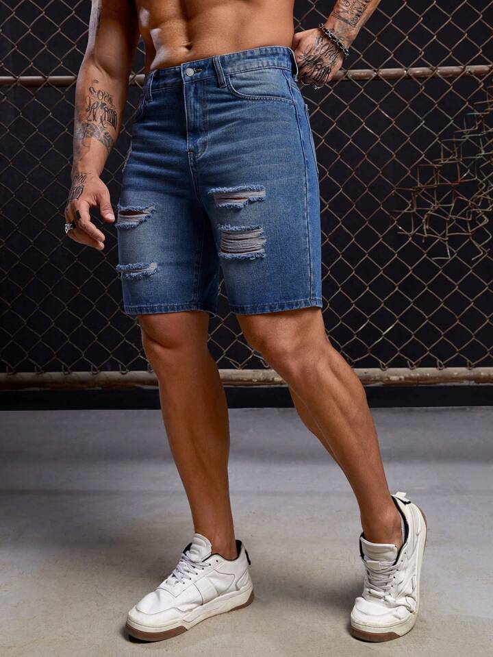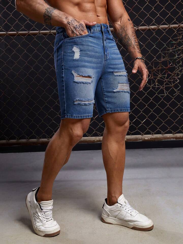 GENTILAND Hombres Shorts en mezclilla algodón desgarro crudo con bolsillo oblicuo