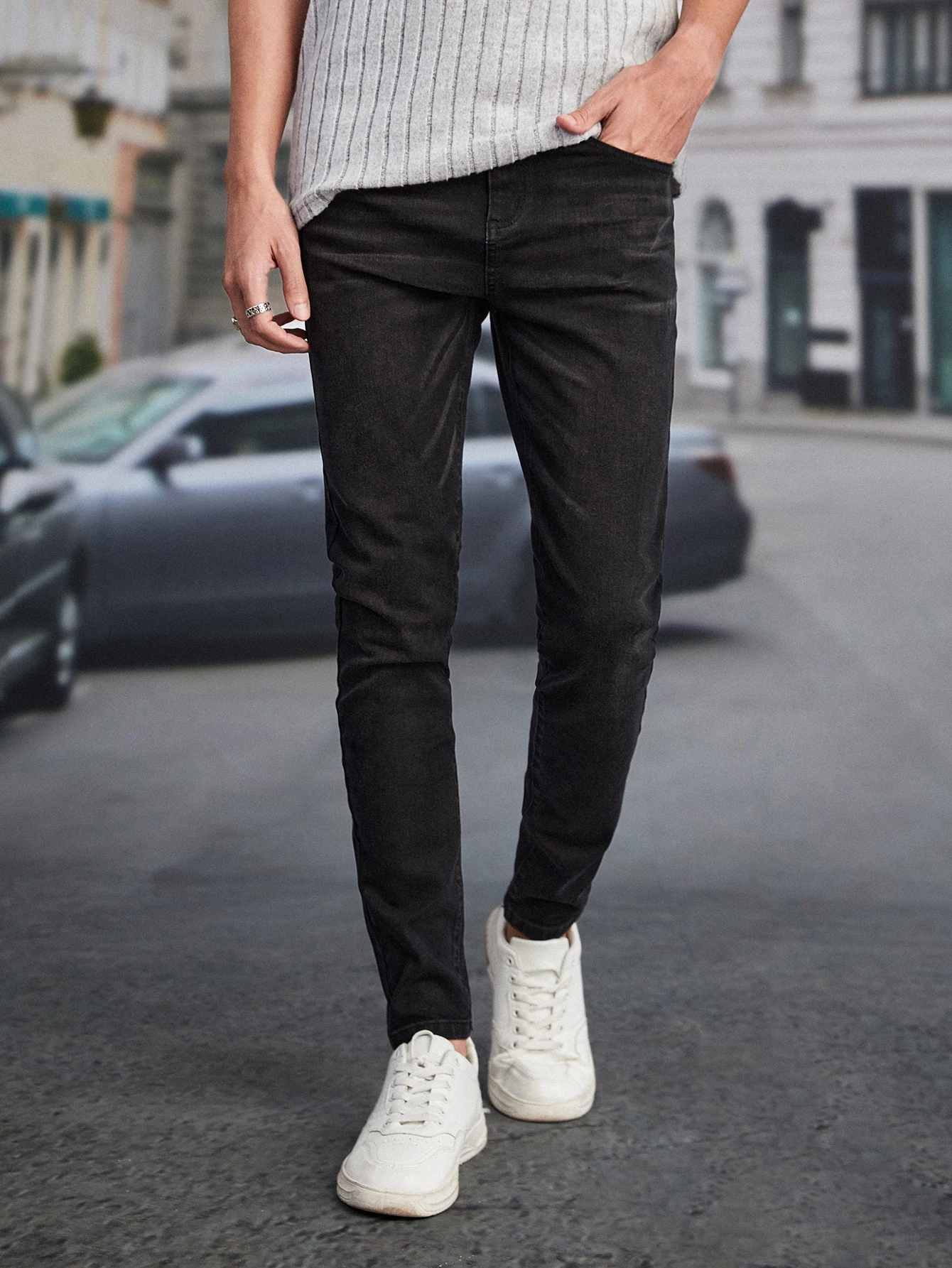 GENTILAND Hombres Jeans ajustados con bolsillo oblicuo
