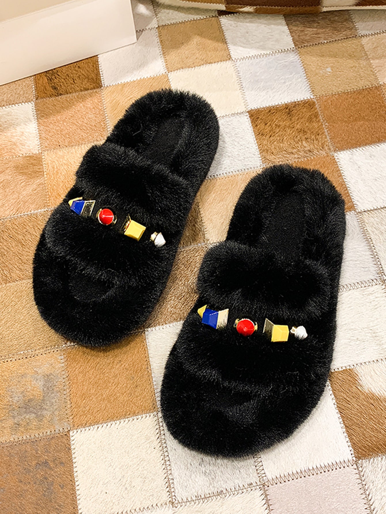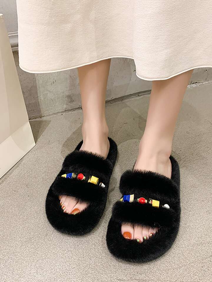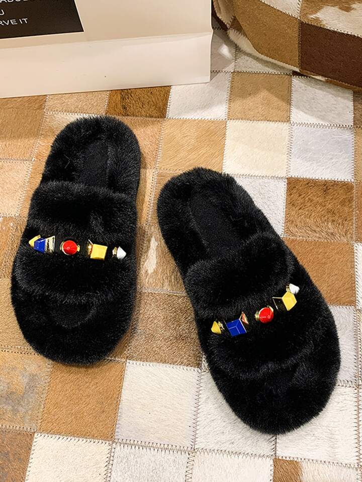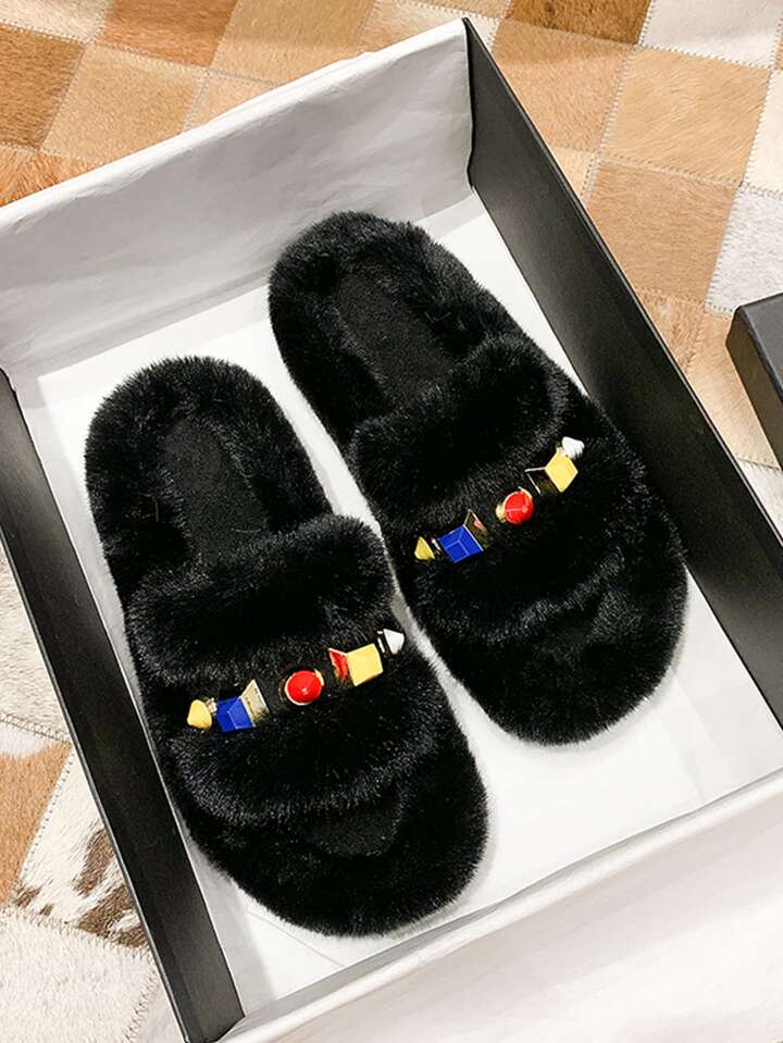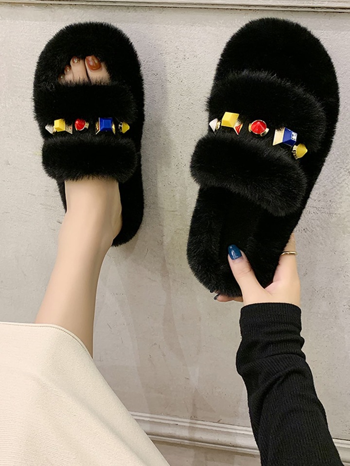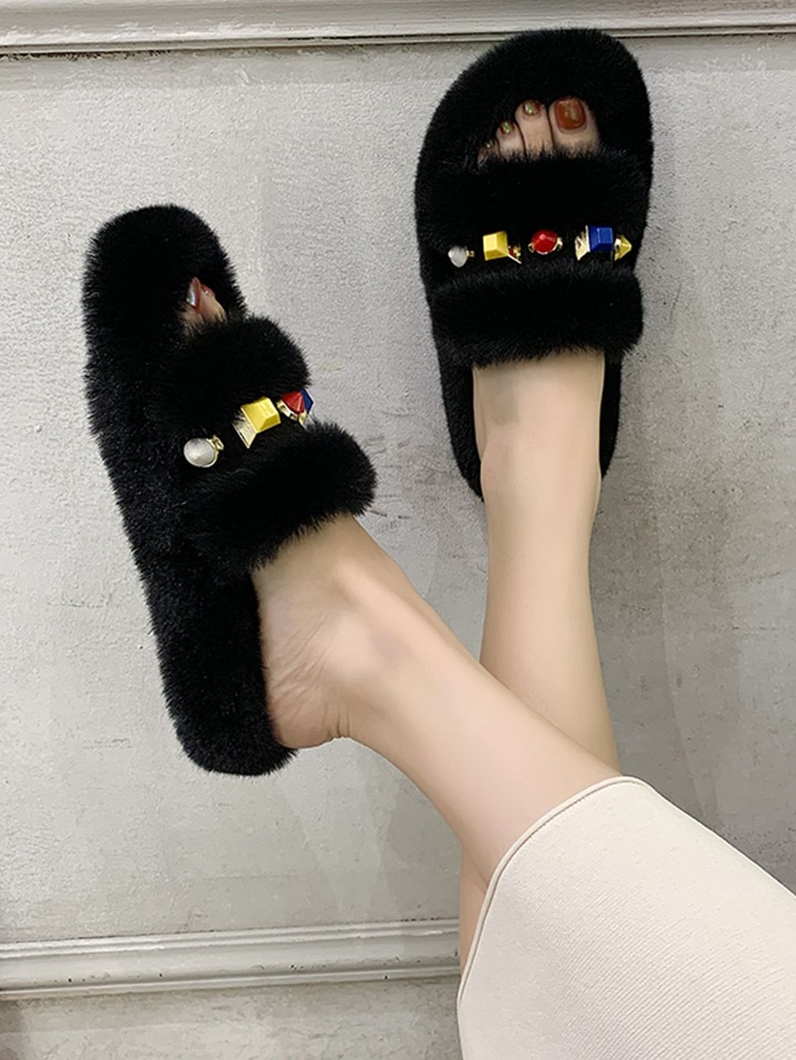 Zapatillas mullidas con decoración de piedras preciosas