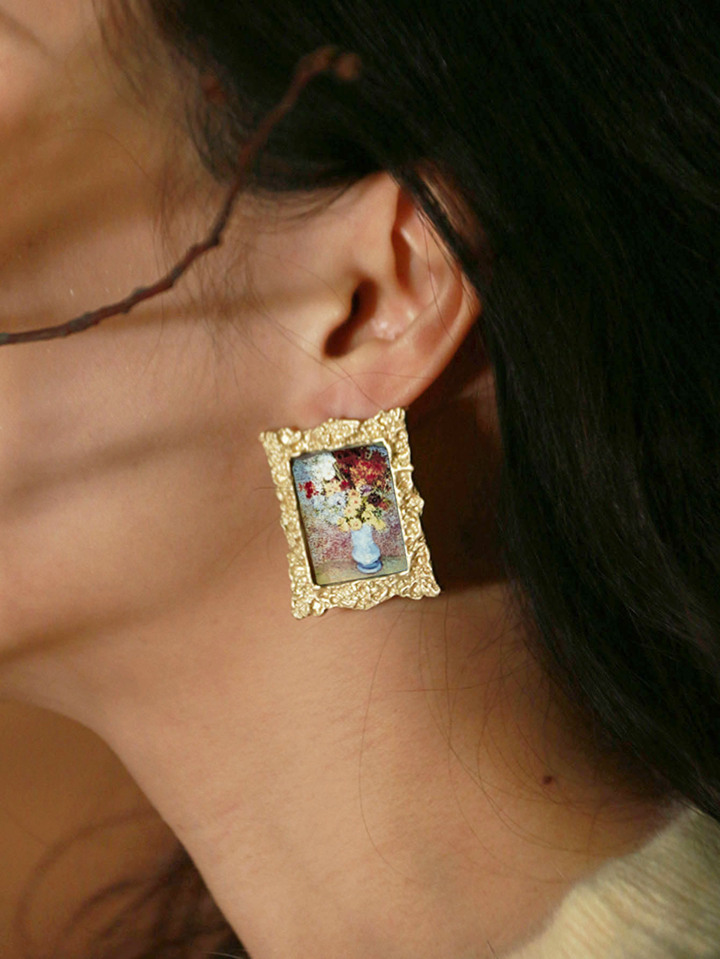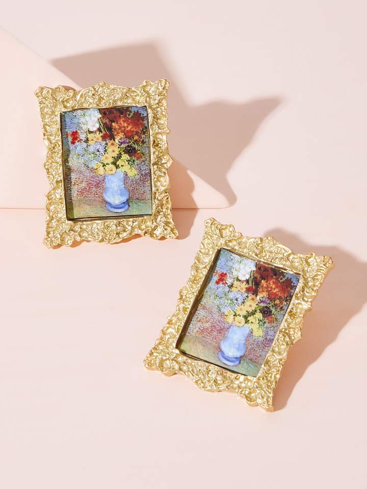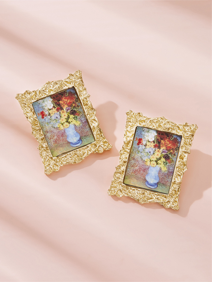 Pendientes con pintura al óleo en forma geométrica 1 par