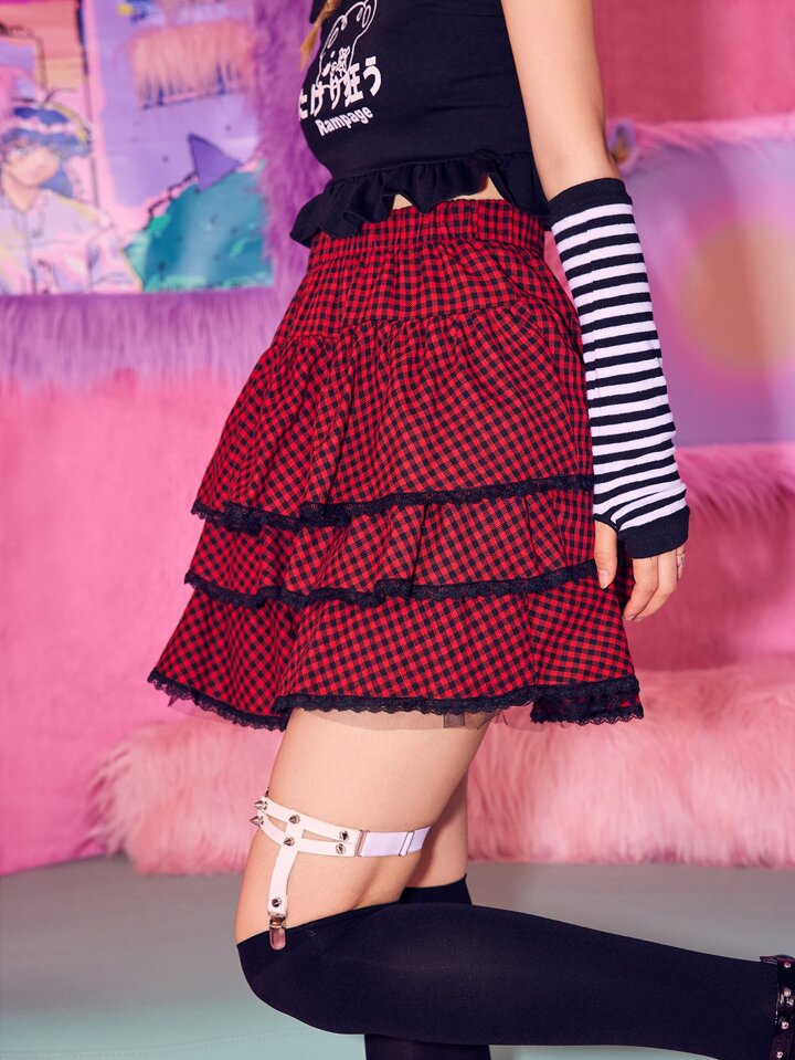 Falda de guingán a capas a capas