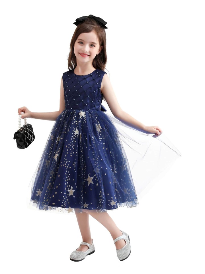 Niñas Vestido de fiesta con cuenta delantero de malla bajo