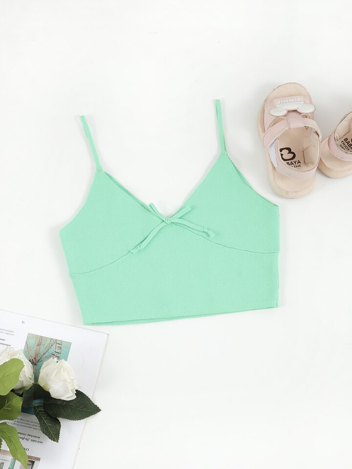 Top Tejido Sin Mangas Para Niñas Con Lazo En La Parte Delantera