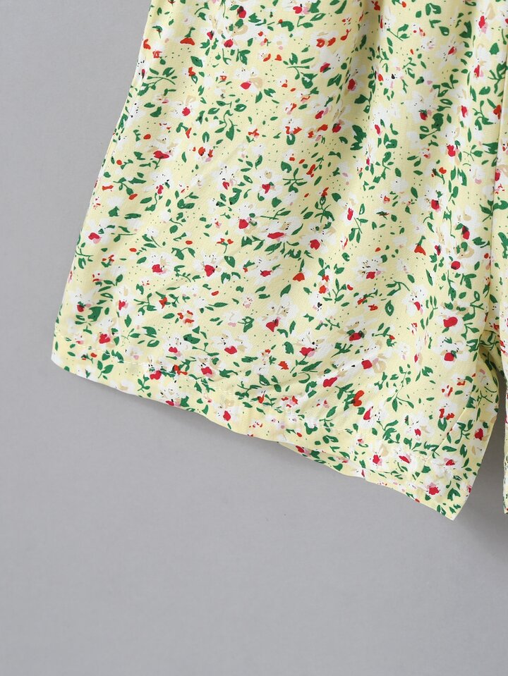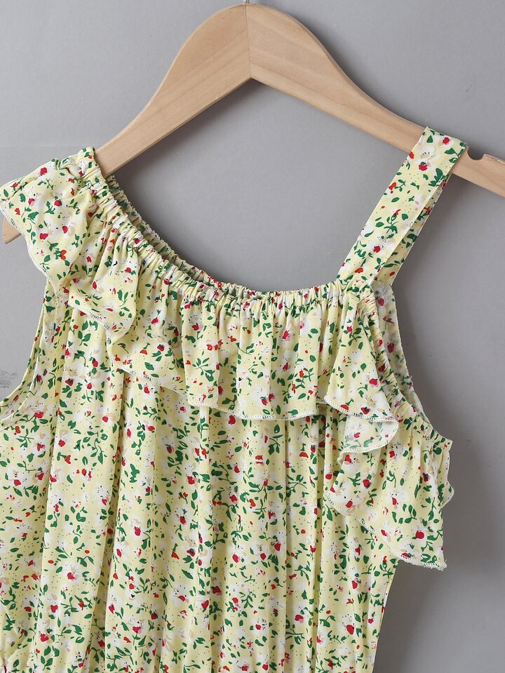 Mono ribete fruncido de cuello asimétrico con estampado floral