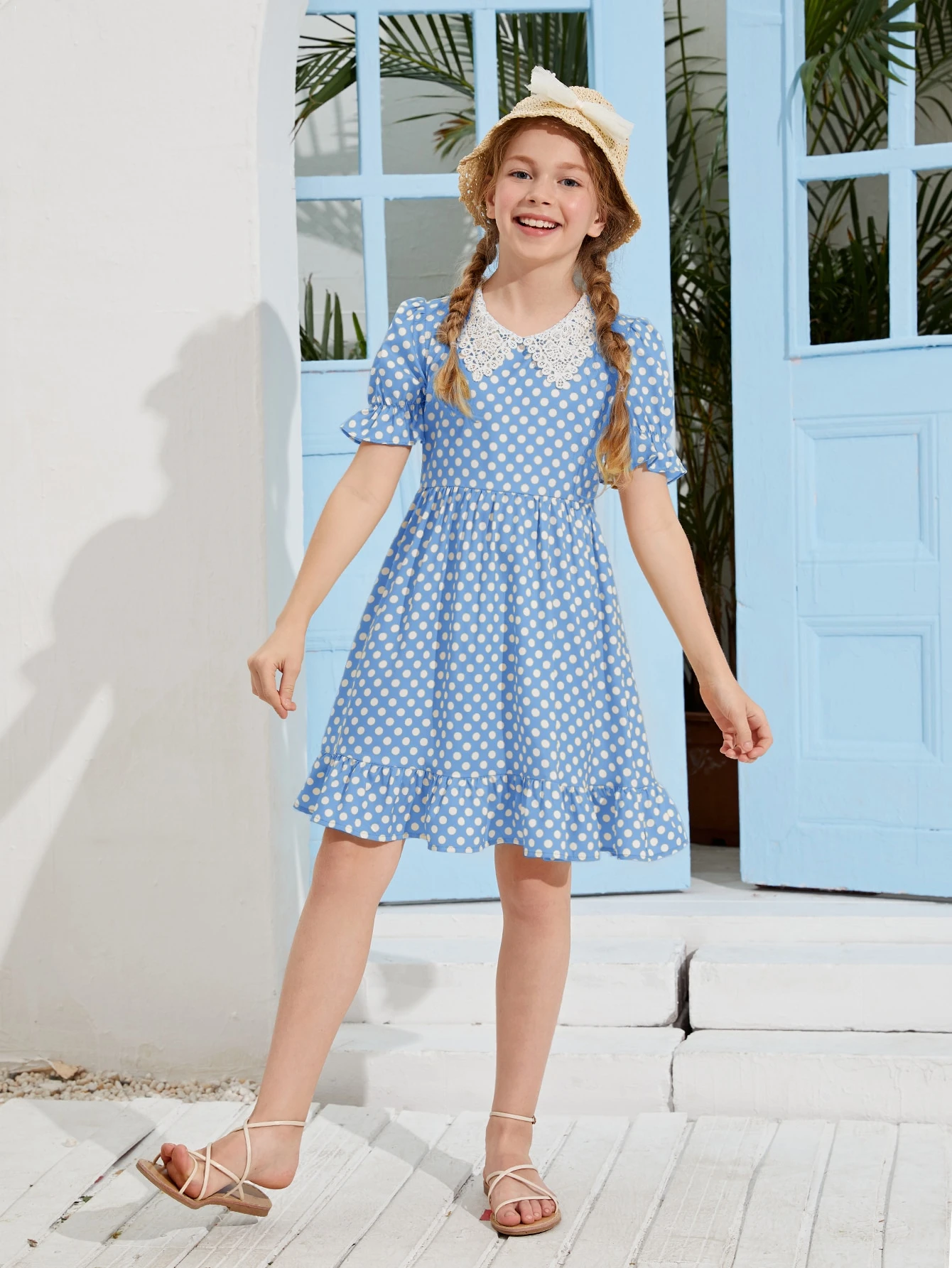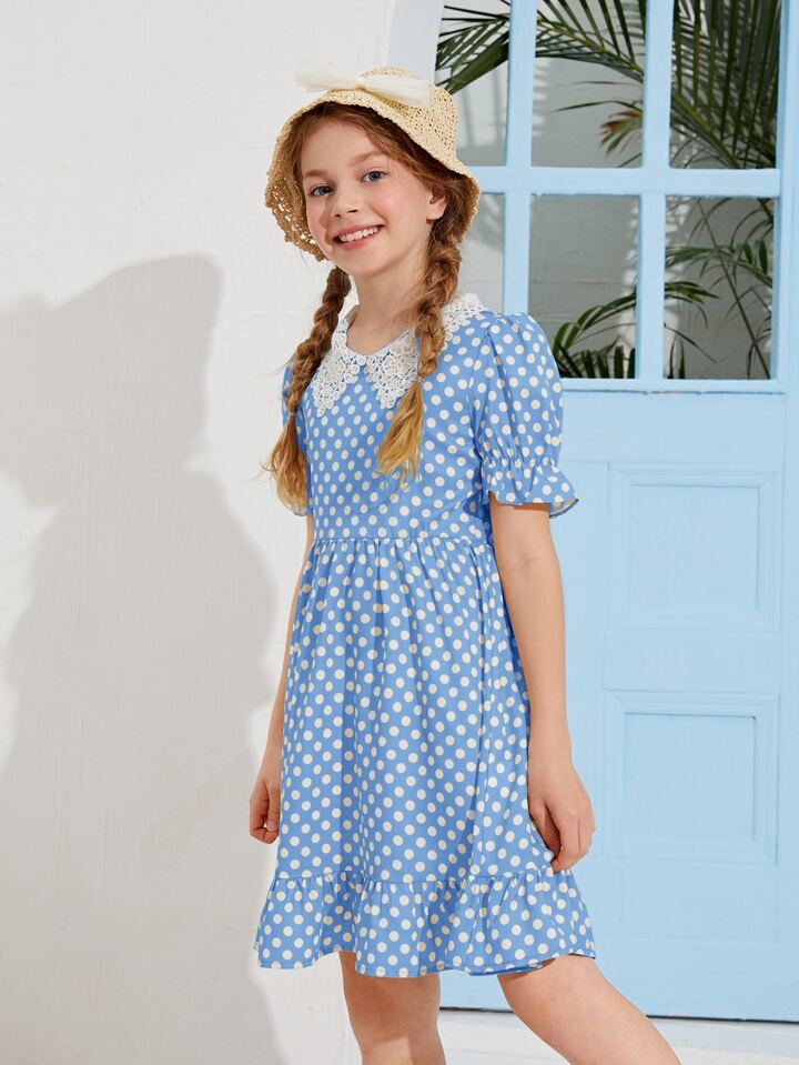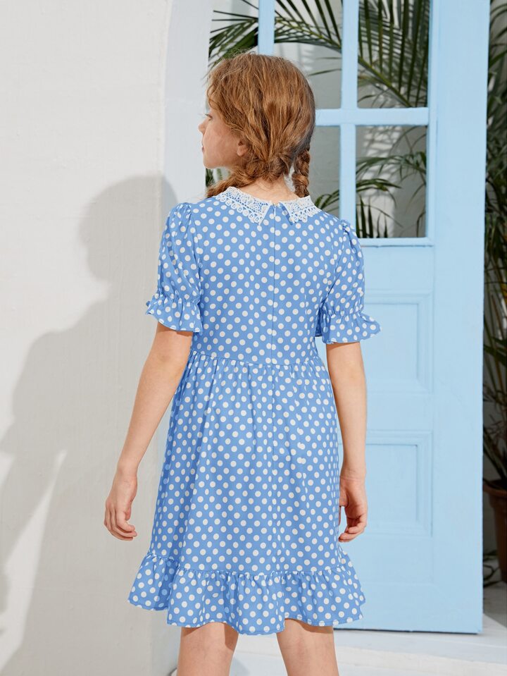 Vestido de lunares de cuello bobo con encaje