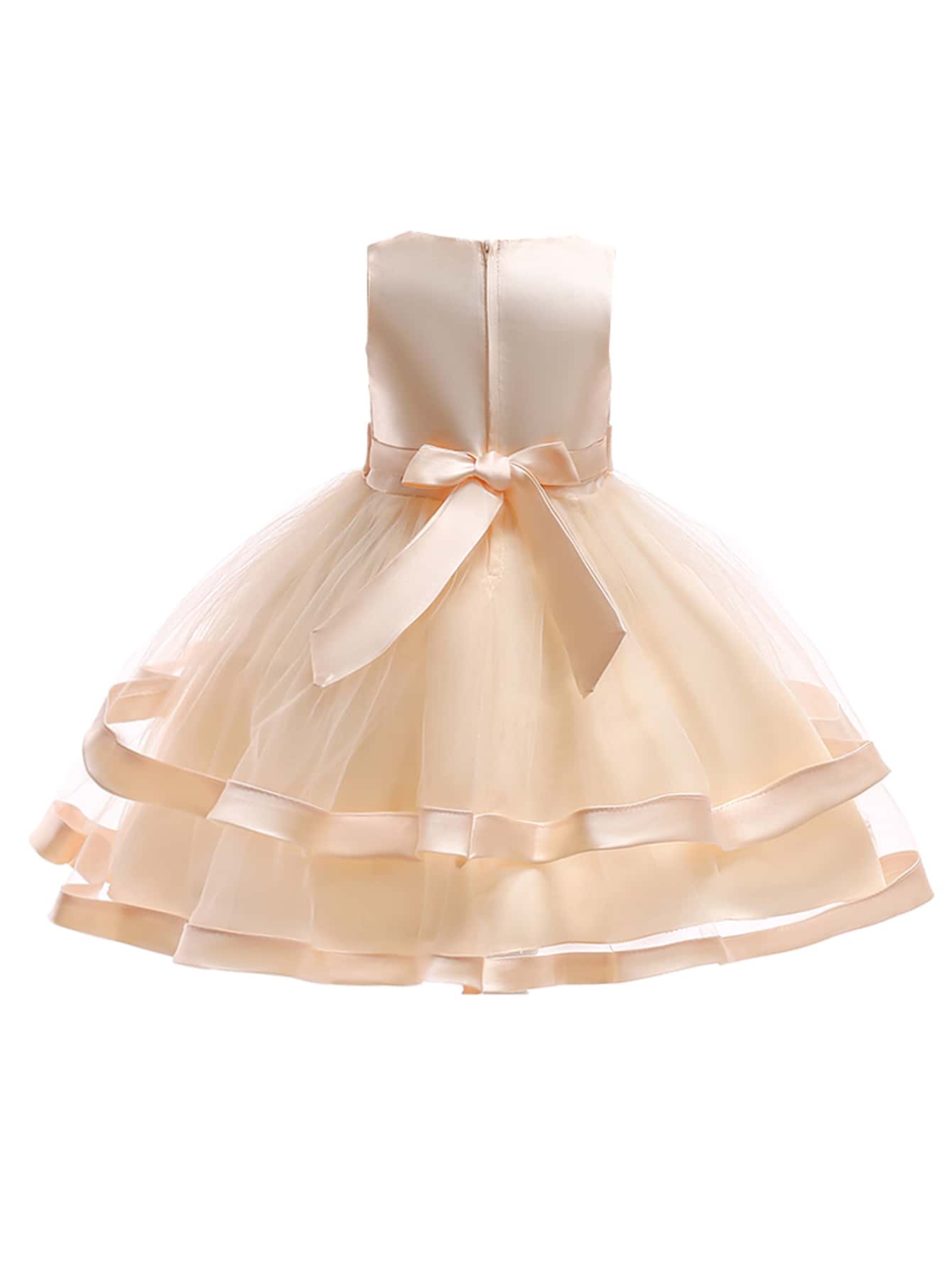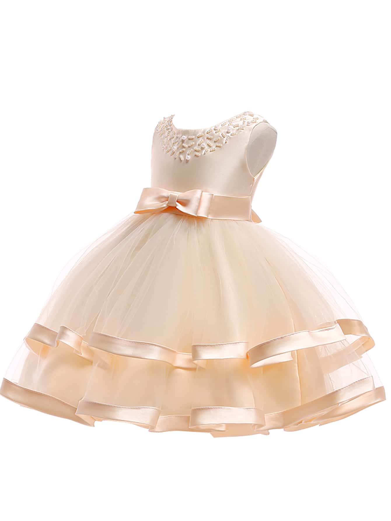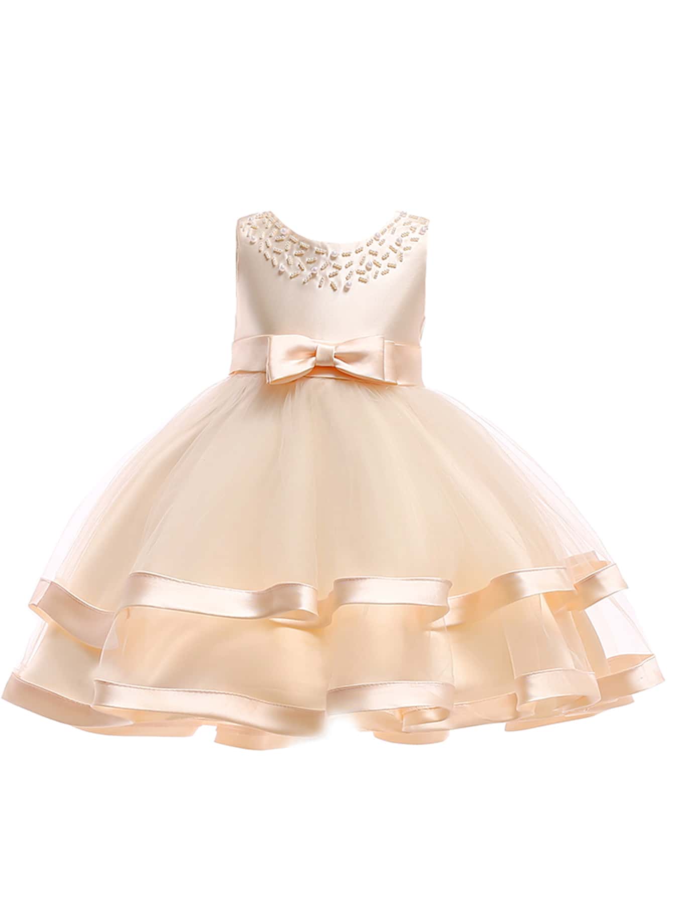 Niñas Vestido de fiesta bajo a capas con perla delantero