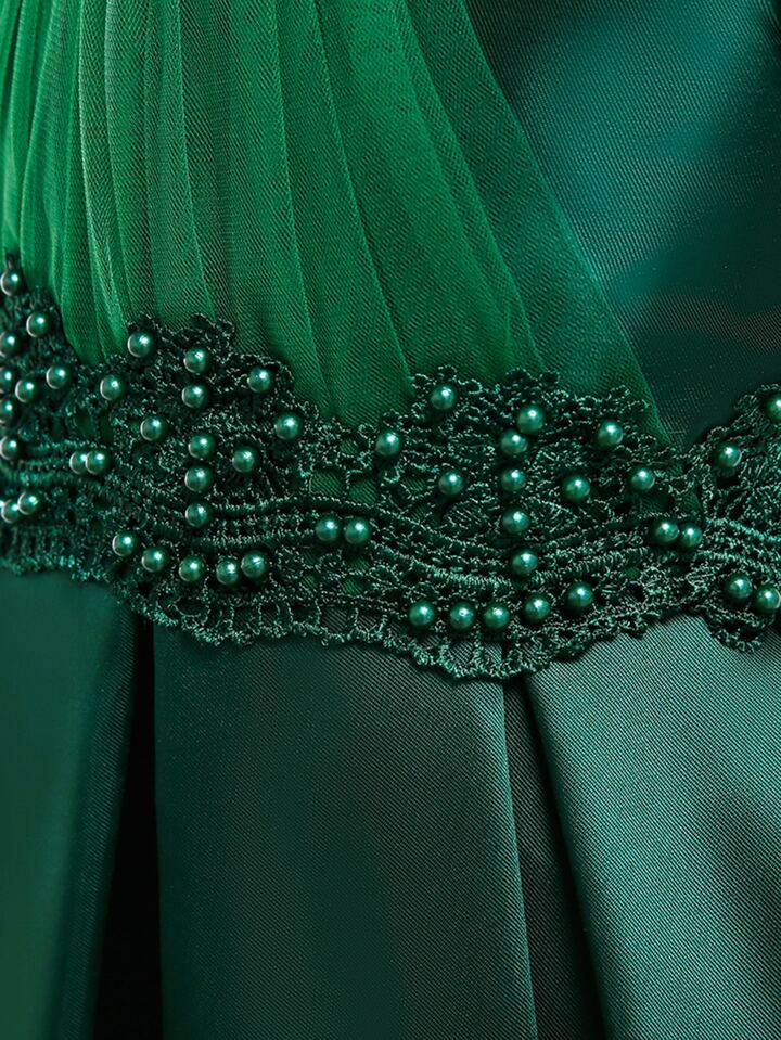 Vestido de fiesta panel con malla con cuenta