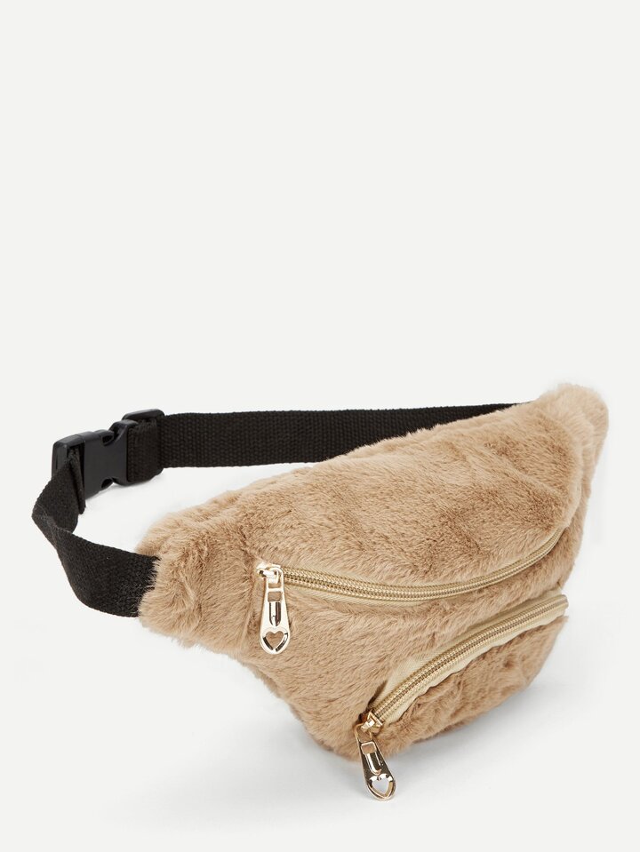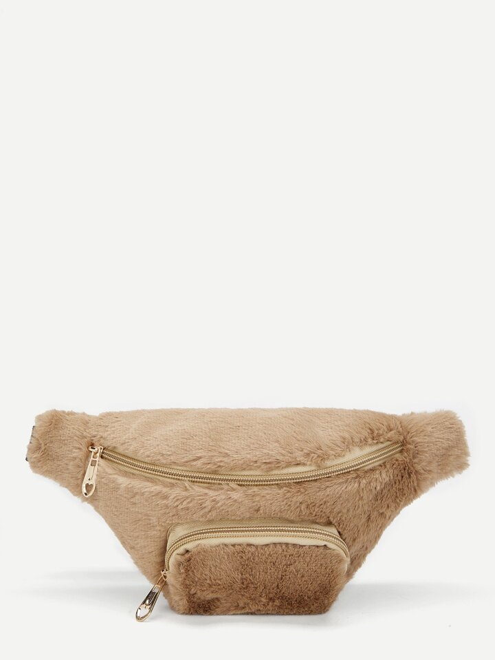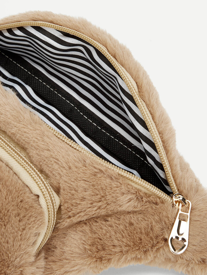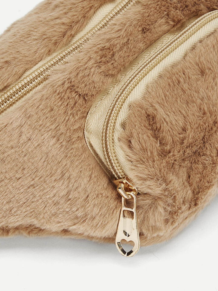 Riñonera de niñas con cremallera con diseño de pelo sintético
