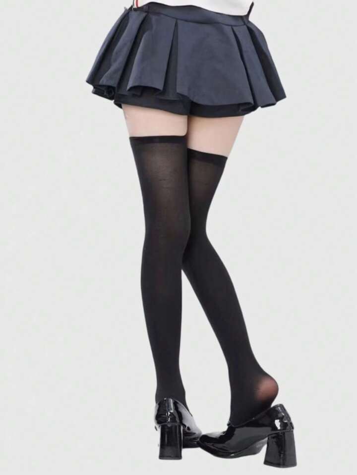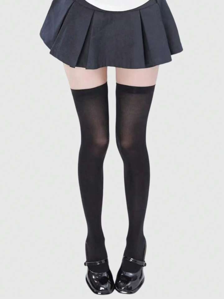 Goth 1 par de medias altas y elásticas de color negro para mujer