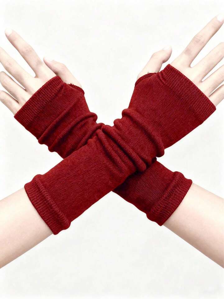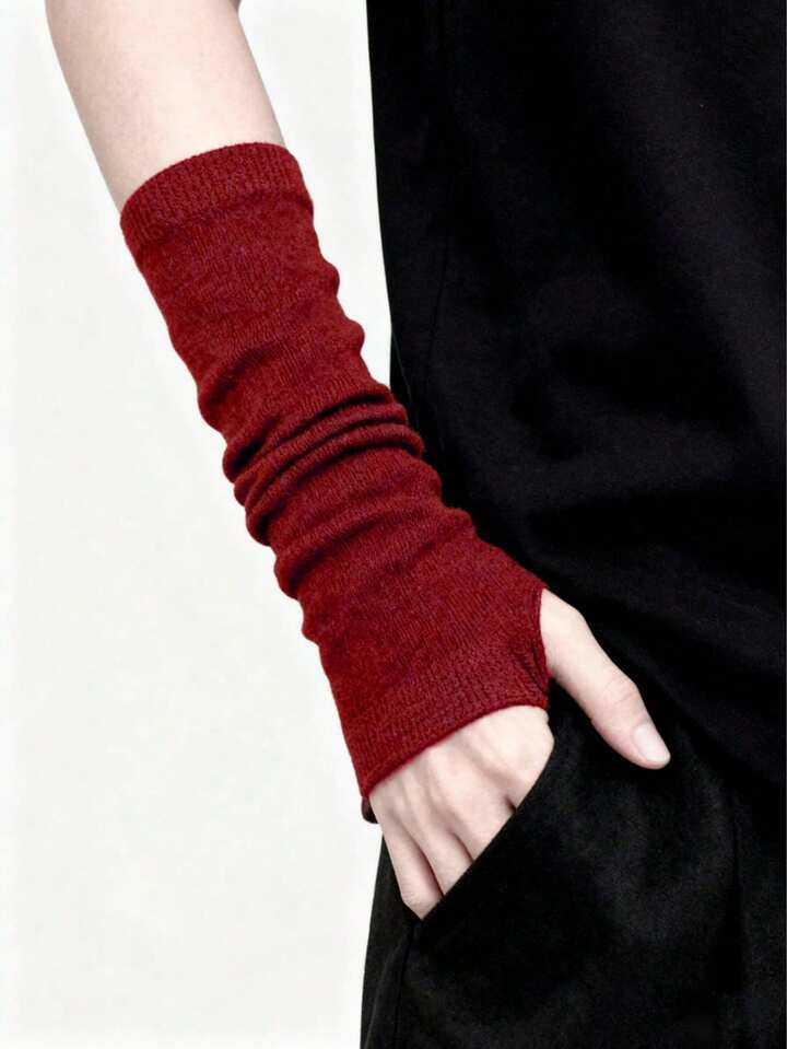 Goth 1 par de calentadores de brazo de estilo minimalista tejidos, manga media de color negro sólido inspirada en el campo, delgada y cálida para primavera/otoño