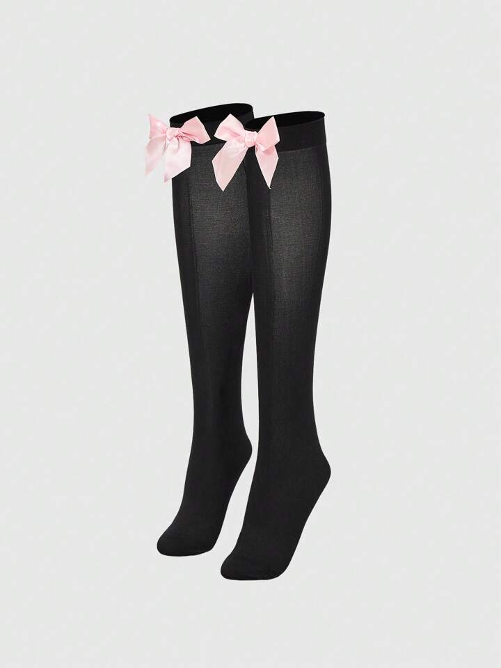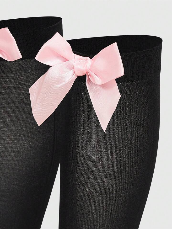 Goth 1 Par de Medias altas por encima de la rodilla con acento de lazo rosa, de estilo minimalista y sexy para la escuela, con diseño opaco y elástico transparente