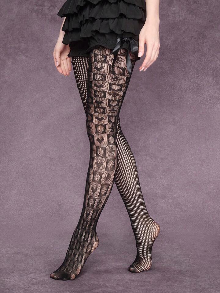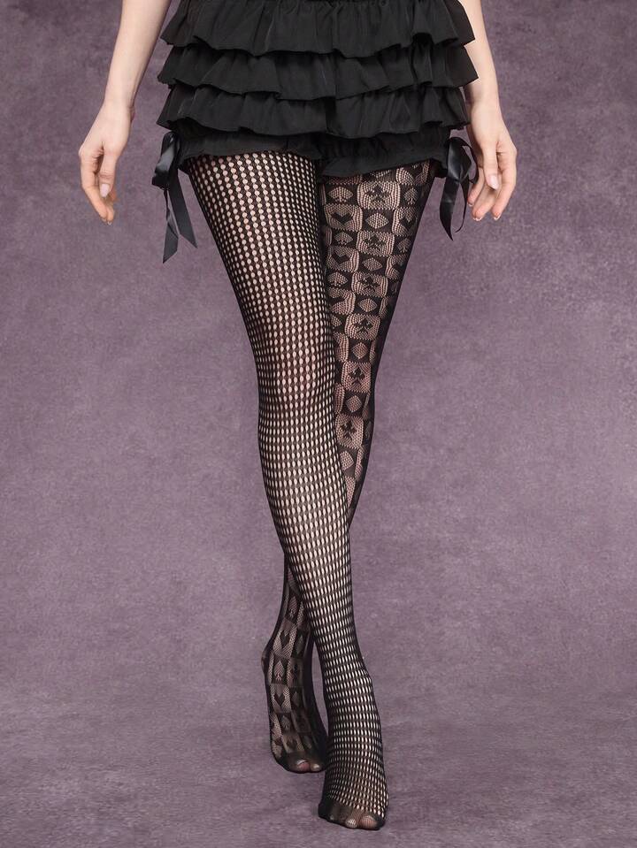 Goth 1 par de medias de rejilla asimétricas negras con patrón de damas/póquer para mujeres, para todo el año
