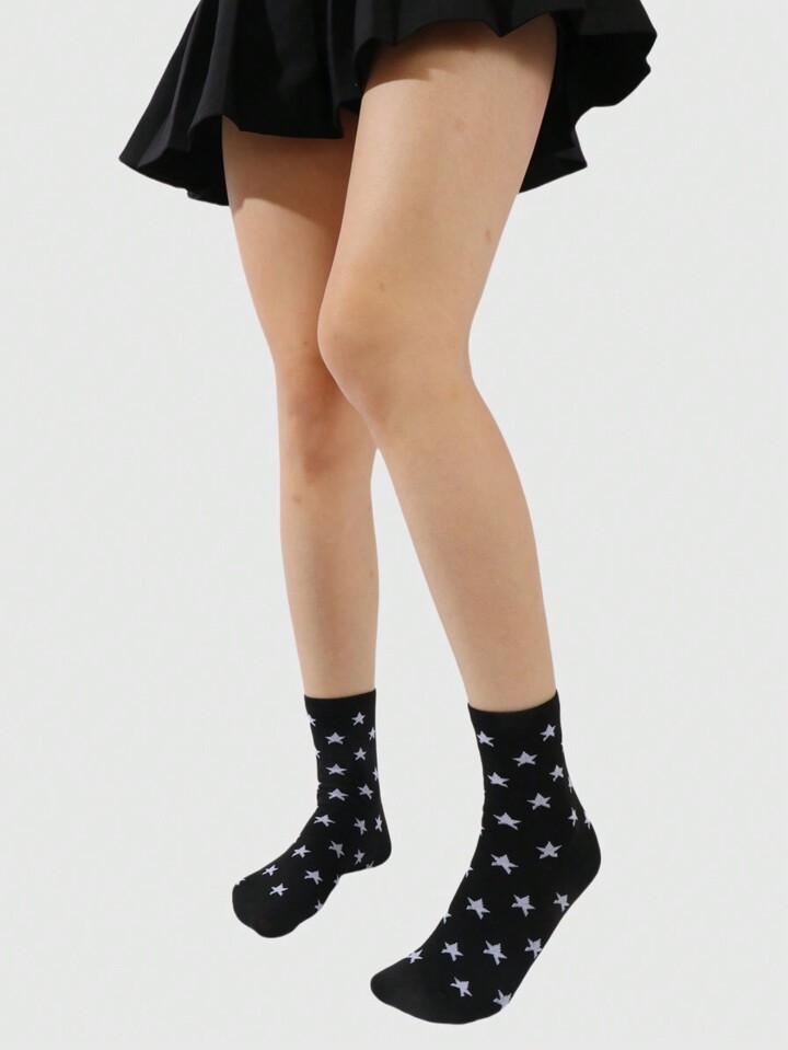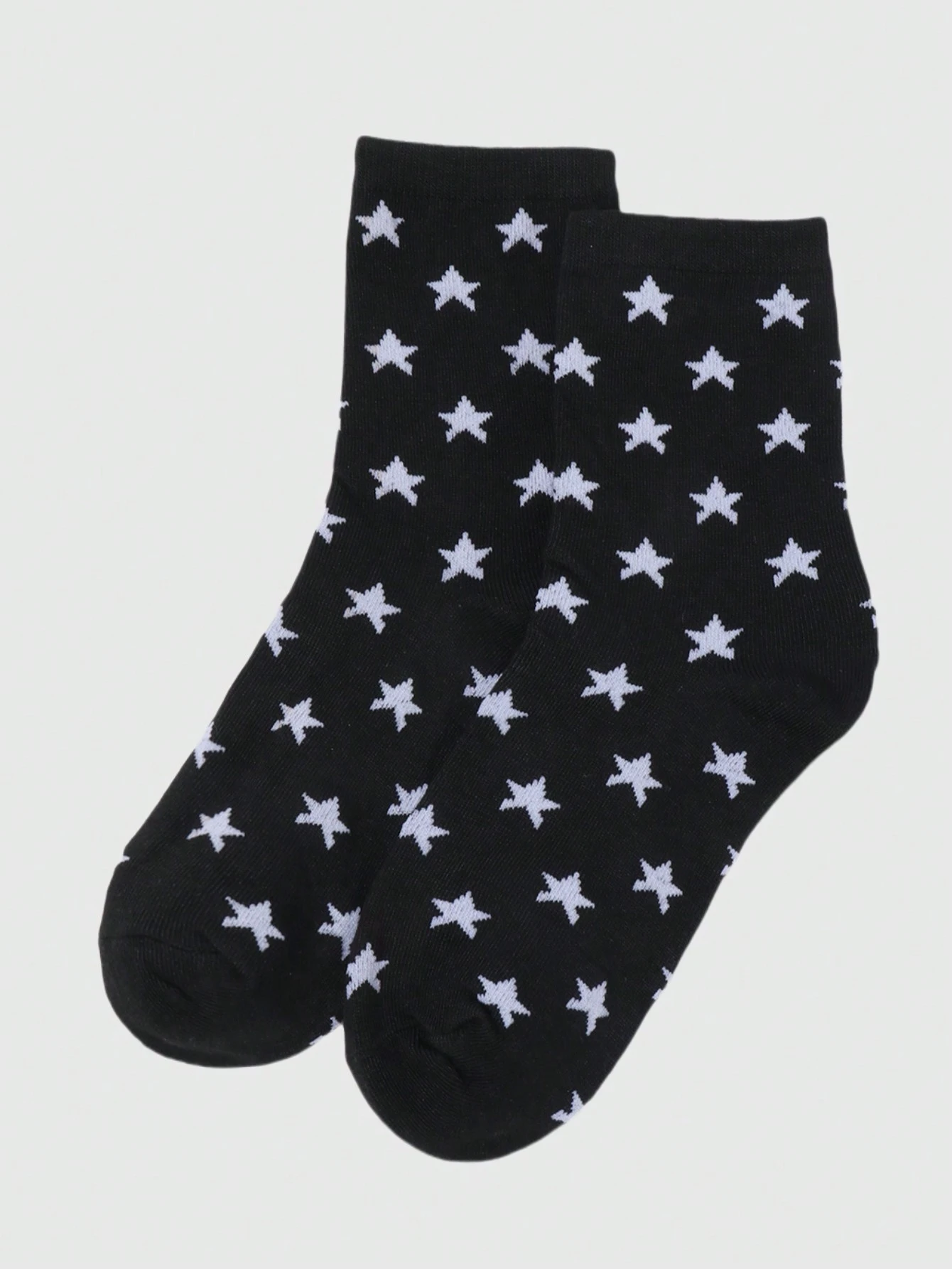 Goth 1 par de calcetines hasta la mitad de la pantorrilla de mujer con diseño de estrellas blancas sobre fondo oscuro, aptos para todas las estaciones