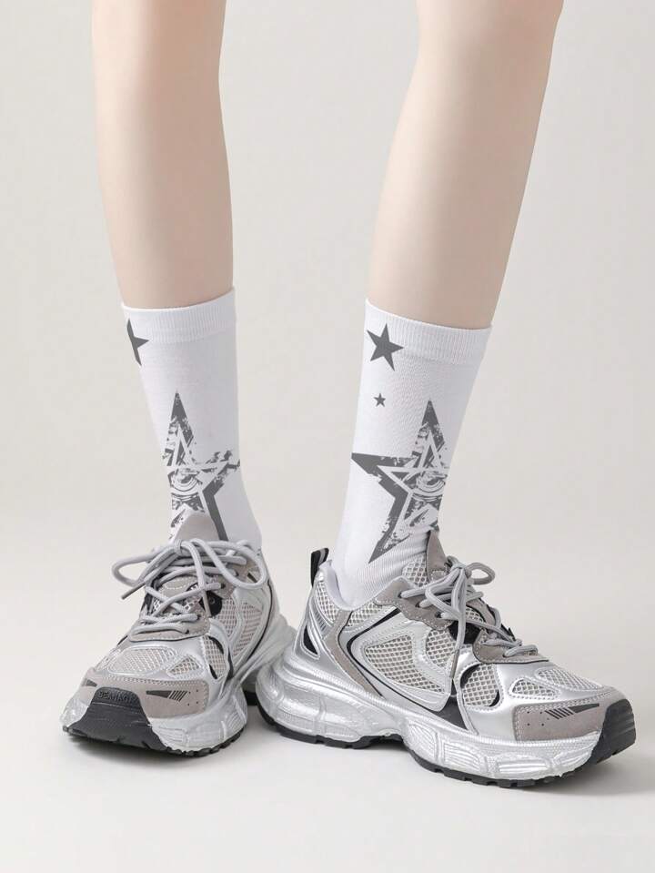 Goth 1 par de calcetines de media pantorrilla impresos de 360 grados para mujer, calcetines casuales cómodos y transpirables con impresión 3D de grafiti, estrellas, dulces y lindos, aptos para uso diario, streetwear, hip-hop, outdoor, running y baloncesto