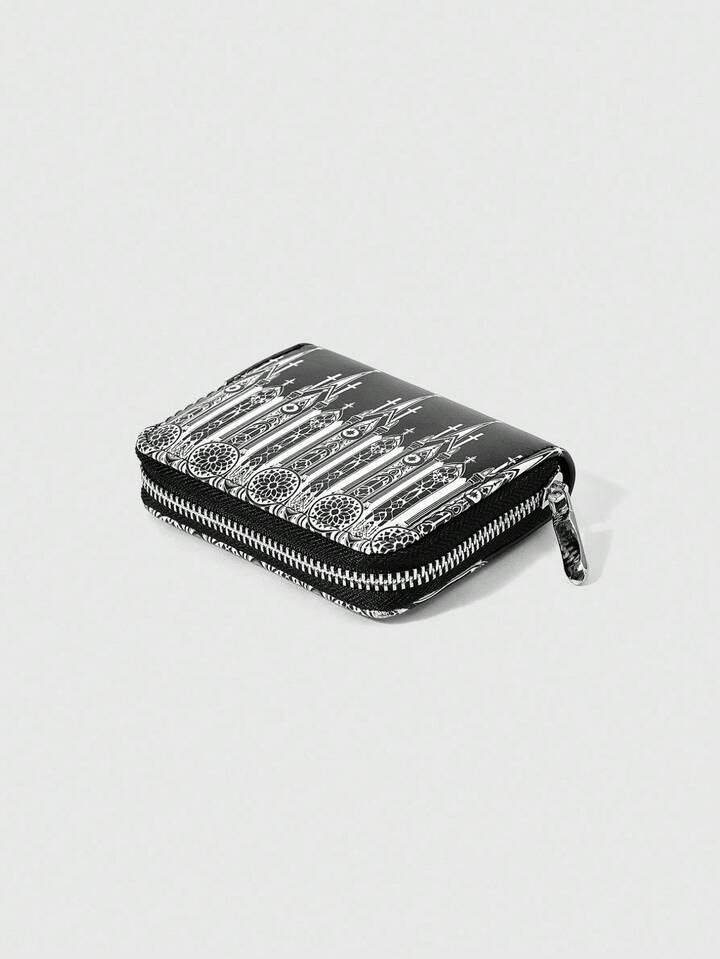 Goth 1 Pieza Monedero con cremallera y diseño compacto con patrón de rosa, cartera minimalista para mujer