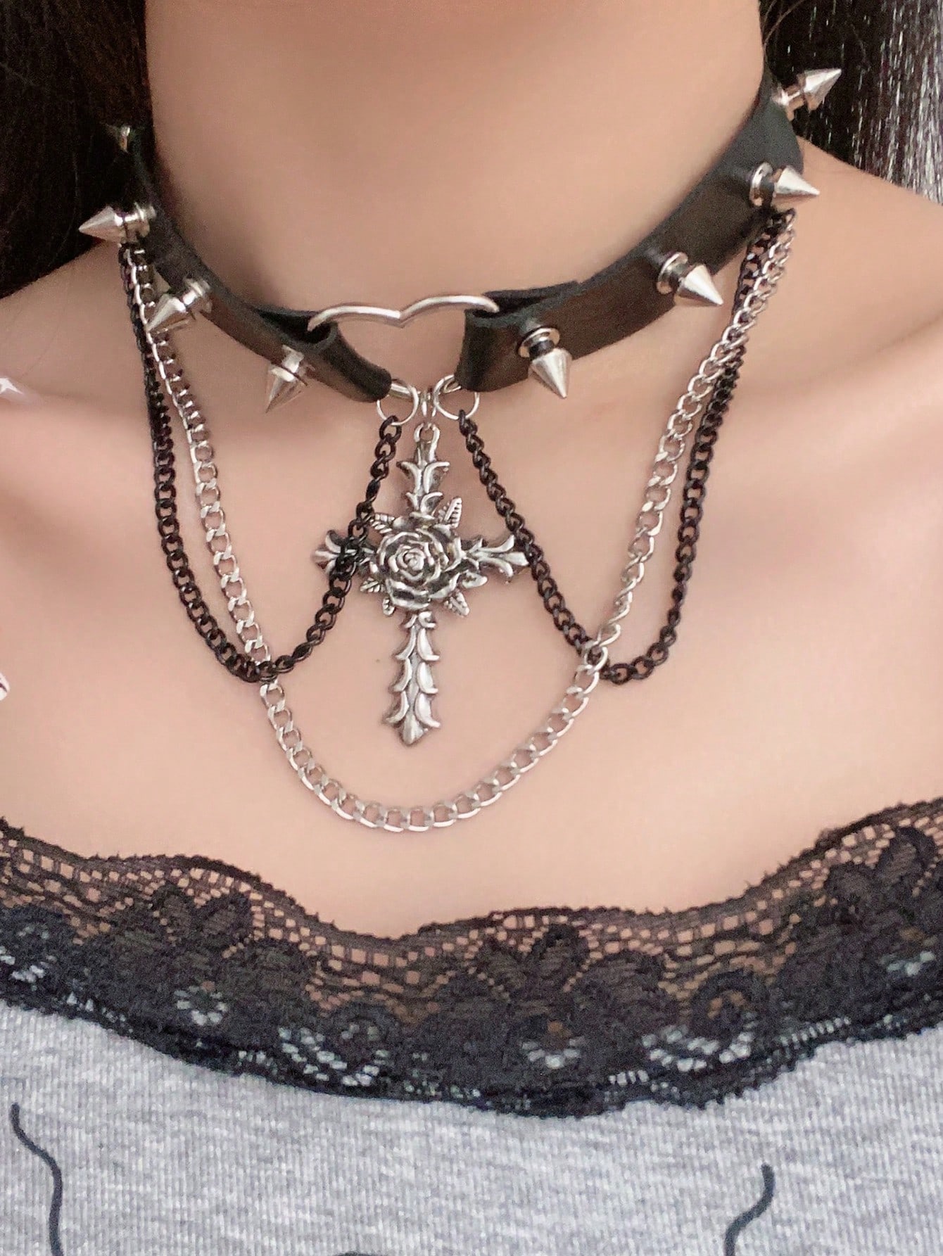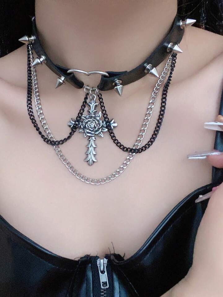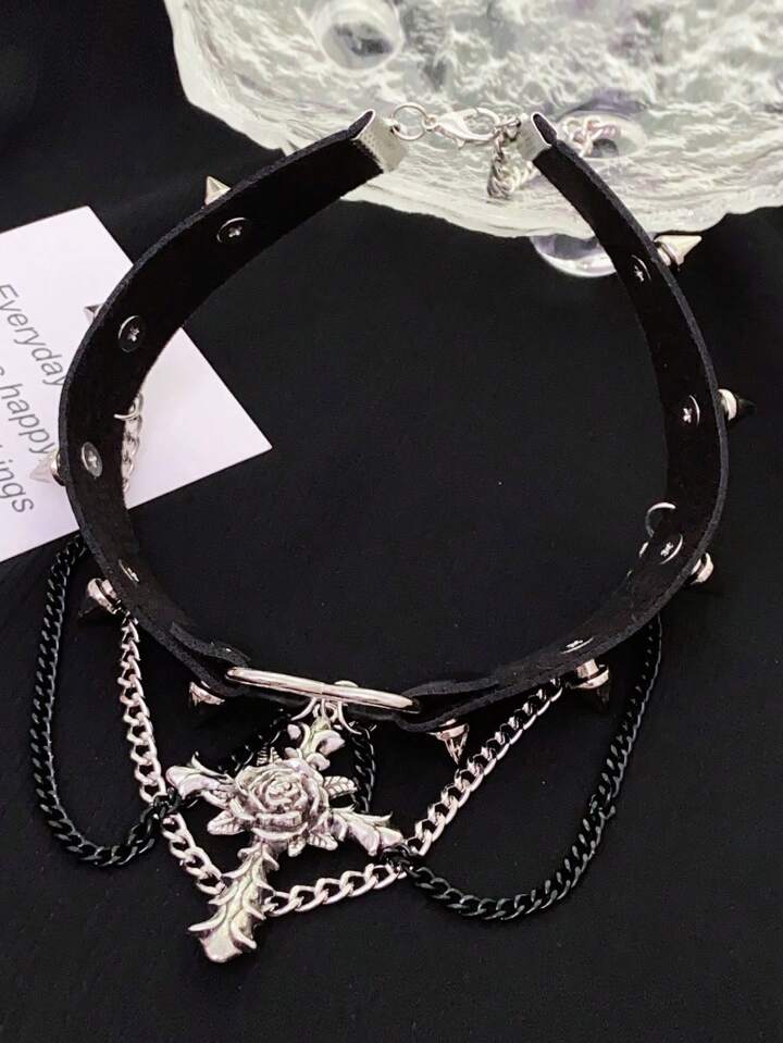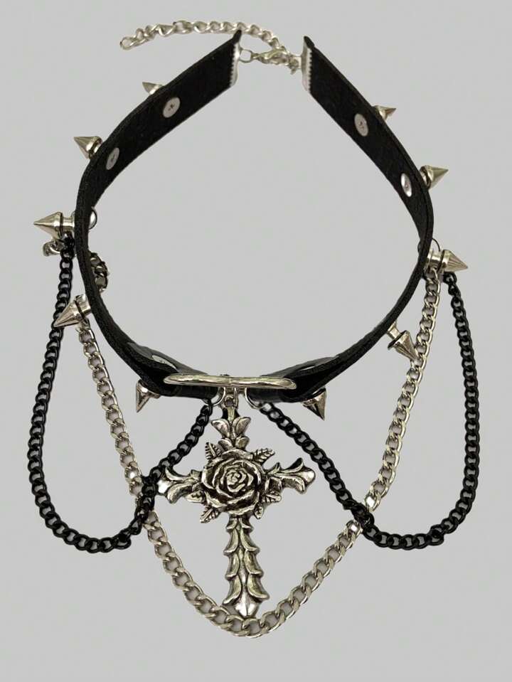 Goth 1 Pieza Collar gargantilla con cadena vintage, cruz, remaches y flecos en estilo punk rock para mujeres