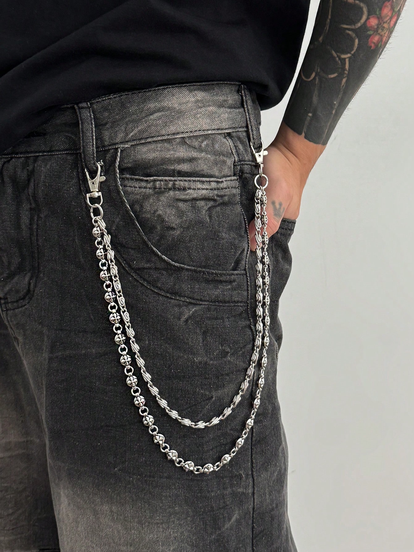 Goth 1 Pieza Cadena de cintura con diseño geométrico y estrella de estilo punk de moda, cadena corporal multinivel personalizada de hip hop para hombres, se puede usar para decorar pantalones, para uso diario, festivales de música, fiestas, unisex, regalo de joyería